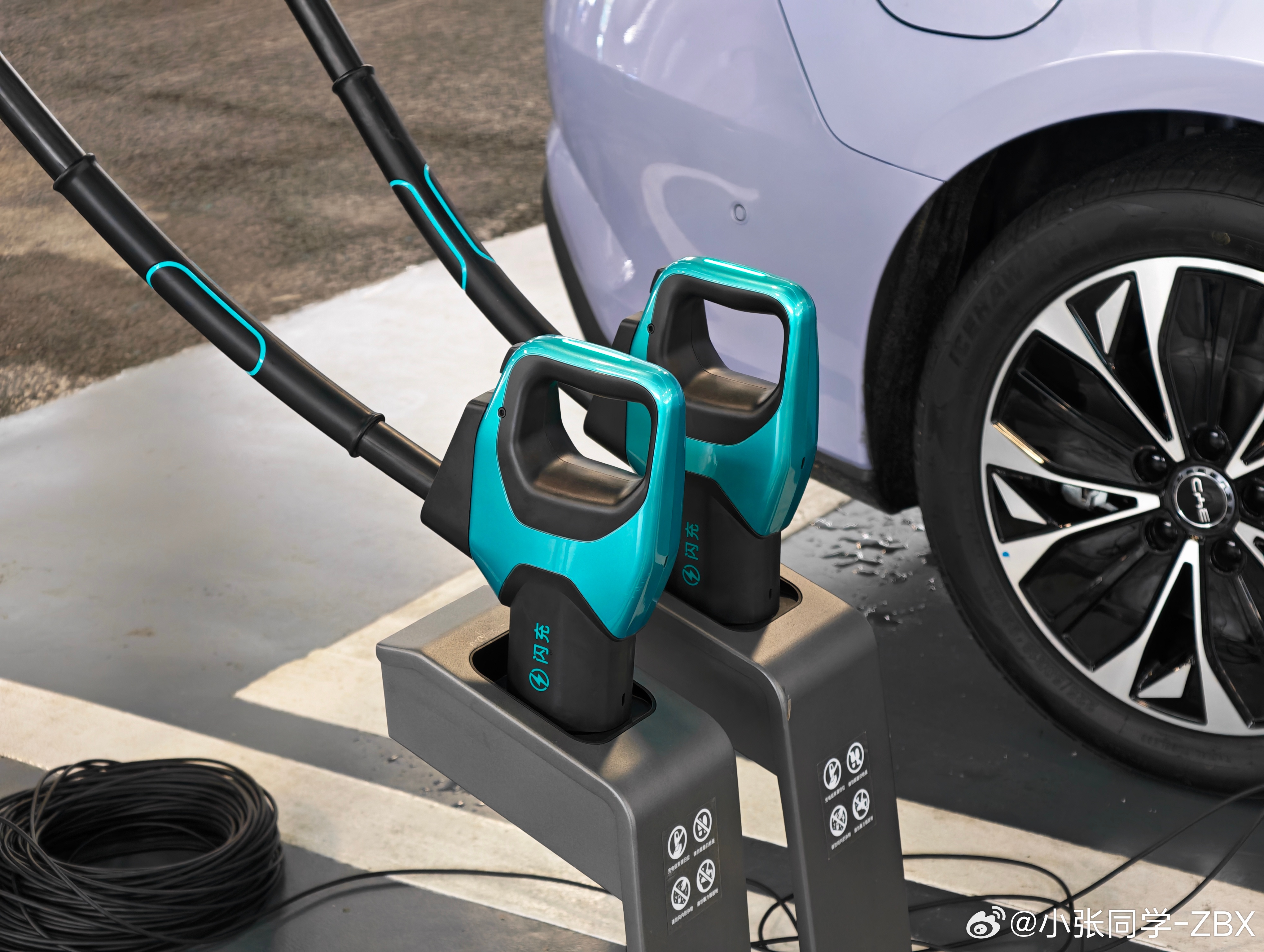 随着闪充桩铺开,二代刀片电池车充电真的像加油一样快了。比亚迪全球首创闪充桩来了新能源汽车
