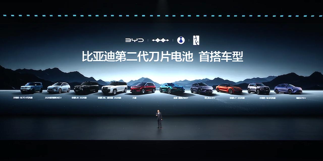 比亚迪兆瓦闪充 2.0 + 第二代刀片电池:补能与储能双核心突破! 在比亚迪技术发布会上,兆瓦闪充 2.0 与第二代刀片电池构成本次补能和储能的黄金组合,两项技术均为2026 年内量产上车的落地级方案,让充电速度与电池本质同时解决消费者对于新能源车的焦虑。 兆瓦闪充可谓是将充电峰值功率推向新高度,这次比亚迪就提出了“5分钟充好、9分钟充饱”的新概念,发布会展示出:10款比亚迪车型在深圳常温环境下实测,全部都是5分钟充好(10-70%)、9分钟充饱(10%-97%),至于充饱为什么是97%,王传福就讲到,这是给动能回收留下空间,为了更低的能耗表现! 而大家更关心的极寒环境下,像比亚迪新车-大唐在-20℃的哈尔滨从20%-97%仅需11分7秒!如此补能速度,可真是比得上加油效率了! 那这次大家期待的比亚迪闪充站也终于迎来了计划,到2026年底将建成20000座,其中以现有公共充电站为坚实基座,协同合作、快速建站的站中站,到2026年底将建成18000座。王传福还提到,比亚迪的闪充站在高速公路平均每隔100公里就会有。不仅如此,比亚迪闪充桩单枪充电功率可达1500kW,成为目前全球量产单枪最大功率充电桩。 更炸裂的消息是,发布会上宣布“即日起,所有搭载第二代刀片电池的闪充车车主自交车之日赠送1年免费闪充权益”!这真是足够诚意的体现。 在发布会现场,第二代刀片电池也是重点升级,新电池技术采用磷酸锰铁锂体系,在保持针刺不起火、无热蔓延的安全标准基础上全面升级,电芯能量密度相比第一代提升30% 以上。 其中腾势 Z9GT 纯电版搭载 122.5kWh 第二代刀片电池,CLTC 纯电续航最高可达同级领先的1036km,经过实测绕一圈海南岛之旅完全不在话下!值得点赞的是,比亚迪对于第二代刀片电池的质保继续加码,这也是对自己技术的自信所在。 与前面的技术放在一起,发布会讲到第二代刀片电池长期用闪充也不会影响安全,成功通过500次闪充循环后边闪充边针刺试验,目前消息得知,率先搭载第二代刀片电池的车型包括大唐、全新腾势Z9GT等多款车型。 总的来看,这次发布会的两项技术从 “充电快” 和 “跑得远、更安全” 双向发力,标志比亚迪正式进入千公里续航 + 油电同速补能的量产时代。当然,这也是真正在解决新能源车使用的各方面痛点,实打实的给我们车主更好更领先的用车体验!【来自懂车帝车友圈】