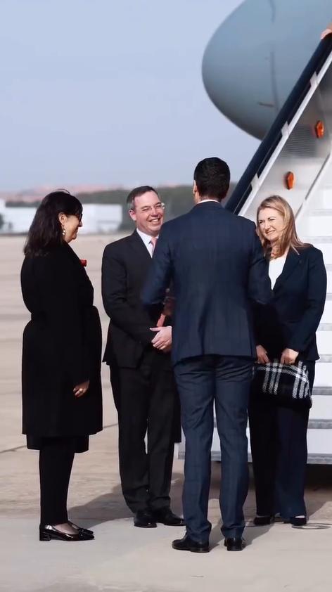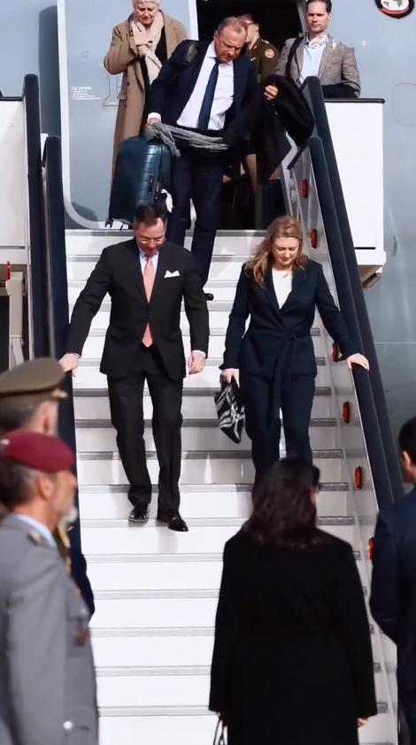 纪尧姆夫妇抵达西班牙!3月5日,卢森堡大公纪尧姆和大公夫人斯蒂芬妮乘坐专机抵达马德里,让人没想到的是舷梯上没有红毯,机场也没有红毯,不过夫妻俩依然开心。 他们出访西班牙并没有带孩子,下飞机的时候也没有牵手,感觉不是两口子似的,还有斯蒂芬妮一手扶着舷梯一手拿着手包,看着好独立。 这对夫妻都很富态,同穿黑色西服套装下飞机,纪尧姆的领带颜色很抢镜,看着俩人的着装如此正式,就是不知道见了西班牙国王穿什么? 希望卢森堡与西班牙友谊长存,因为两个王室的往来,能够让促进交流与合作,尽管卢森堡王室没有西班牙王室影响力大,但在王室圈子里也让人不容忽视。
