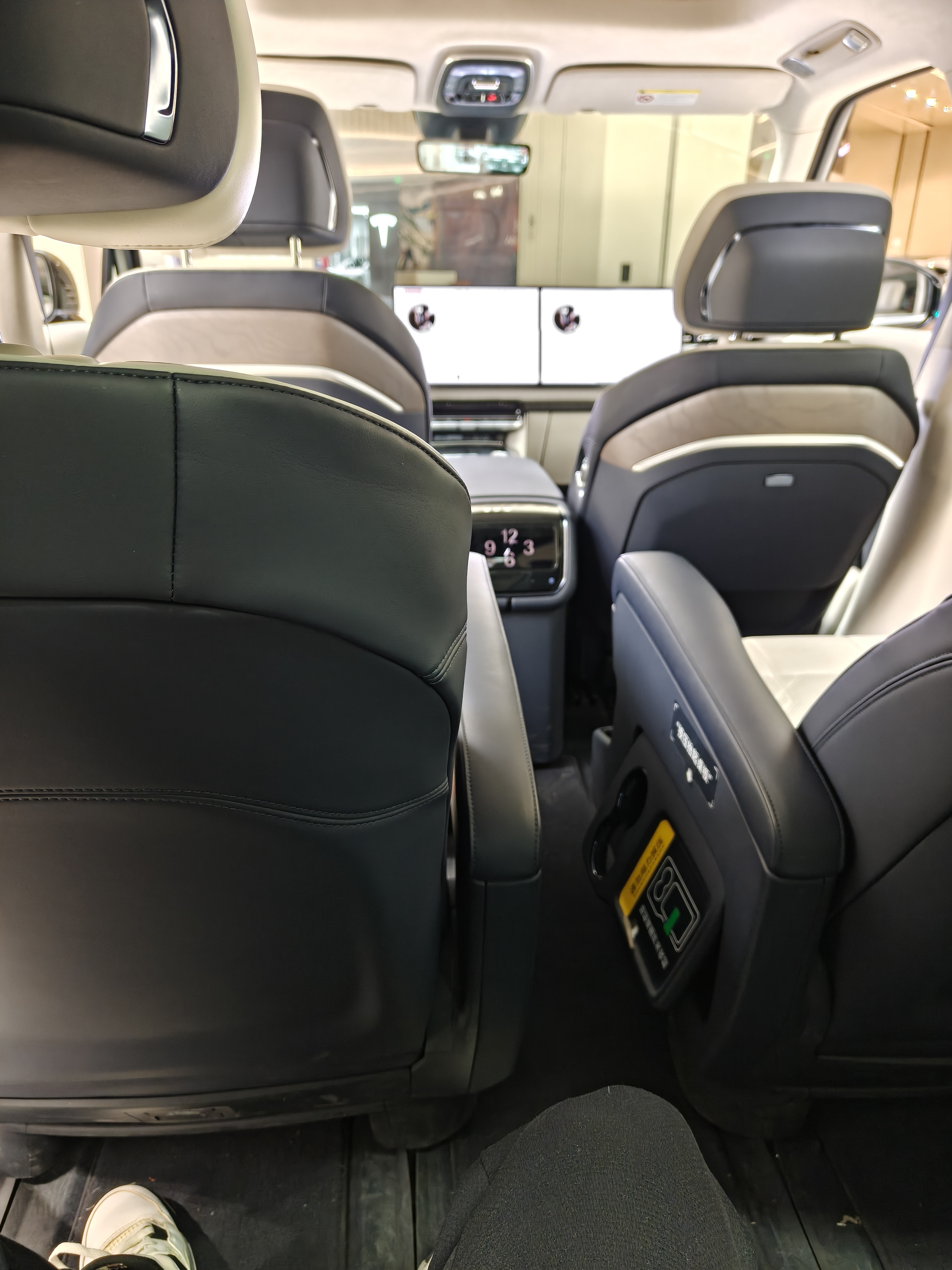 前排人机模型可以给好评,调节范围很多的座椅坐着很舒服,虽然是一台庞大的车,但是坐在驾驶位时视野很好,对于车周边空间的判断也很容易,这点好评。第二排功能很多,要调到舒服的坐姿很容易,同样好评。第三排可以支持前后移动和靠背调节,调到比较舒服的坐姿也很容易,这点对绝大多数SUV可以说碾压。总体看,这车可以比较舒服地坐下三排成年人,且前两排通风加热按摩这种配置让人很享受。后备箱肯定无法像大尺寸mpv那么宽敞,不过得益于车身高度,竖着放几个行李箱问题不大。