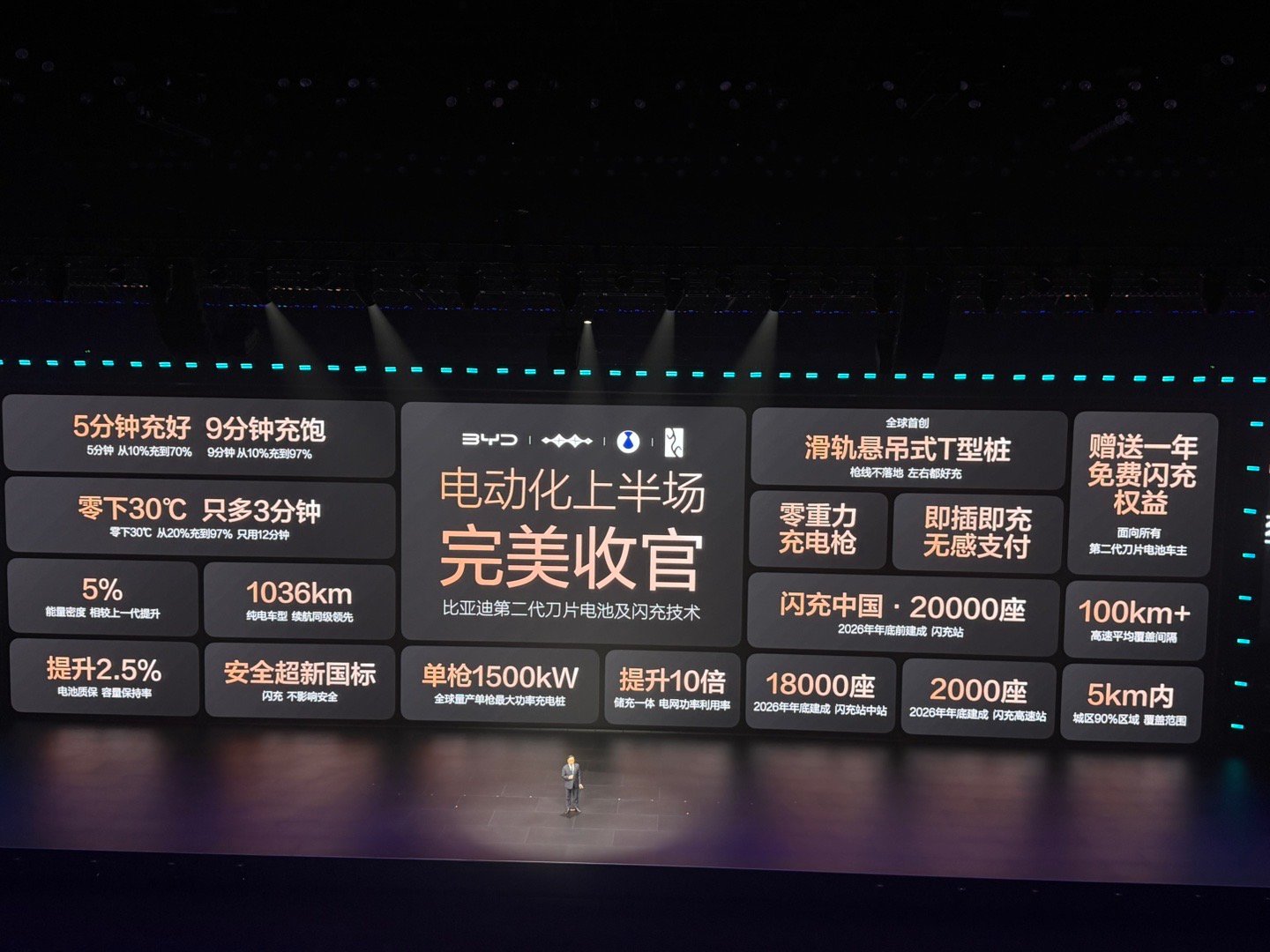 配套的闪充生态同样重磅:单枪1500kW的全球量产最大功率充电桩,充电效率提升10倍,电网功率利用率更高。2026年底前,比亚迪将建成20000座闪充站、18000座闪充中站、2000座闪充高速站,高速平均覆盖间隔100km+,城区5km内覆盖90%区域,补能焦虑彻底消失。