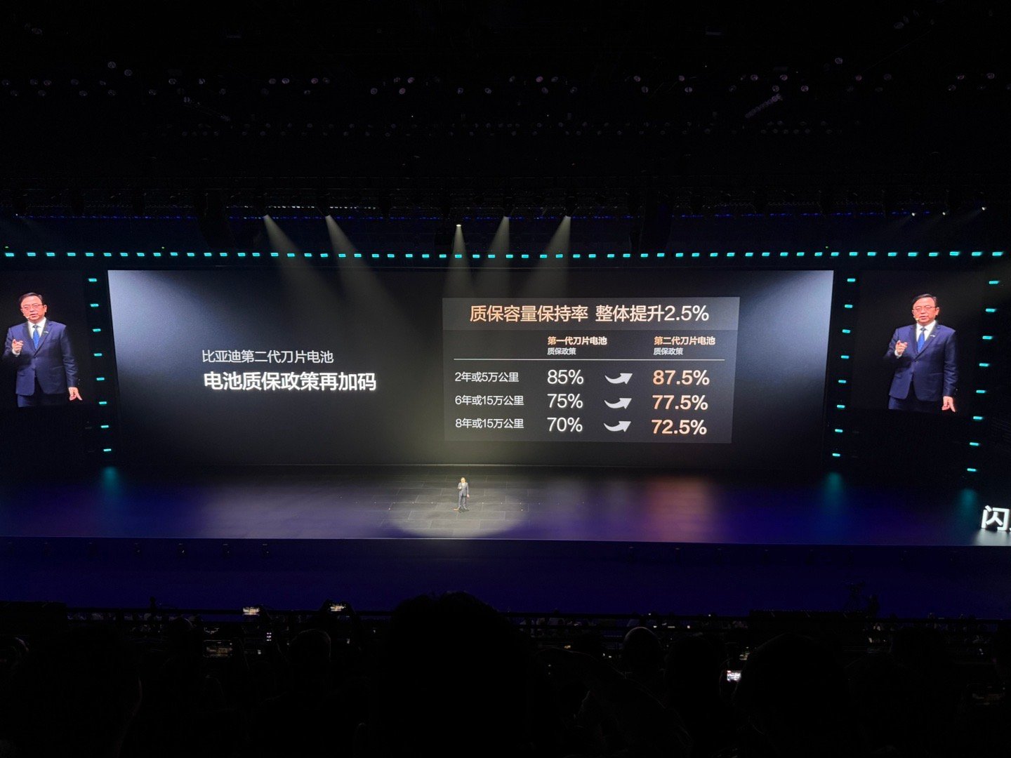 核心技术上,第二代刀片电池实现了5分钟从10%充至70%,9分钟从10%充至97%,就算在零下30℃低温环境,从20%充到97%也仅需12分钟,比常温仅多3分钟,彻底解决了冬天充电慢的痛点。同时,电池能量密度相比第一代提升5%,纯电车型续航可达1036km,同级领先;安全性能更是远超新国标,可同时触发4节电池短路不爆炸,底部撞击、边闪充边针刺试验均不起火不爆炸,500次闪充循环后性能稳定,电池质保容量保持率还提升了2.5%。