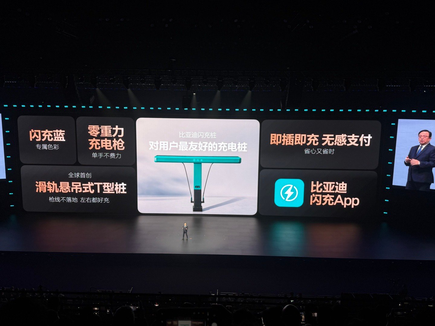 用户体验上,全球首创滑轨悬吊式T型桩,枪线不落地,左右都好充;零重力充电枪单手操作不费力,搭配即插即充+无感支付,省心又省时。面向第二代刀片电池车主,还赠送一年免费闪充权益,诚意拉满。