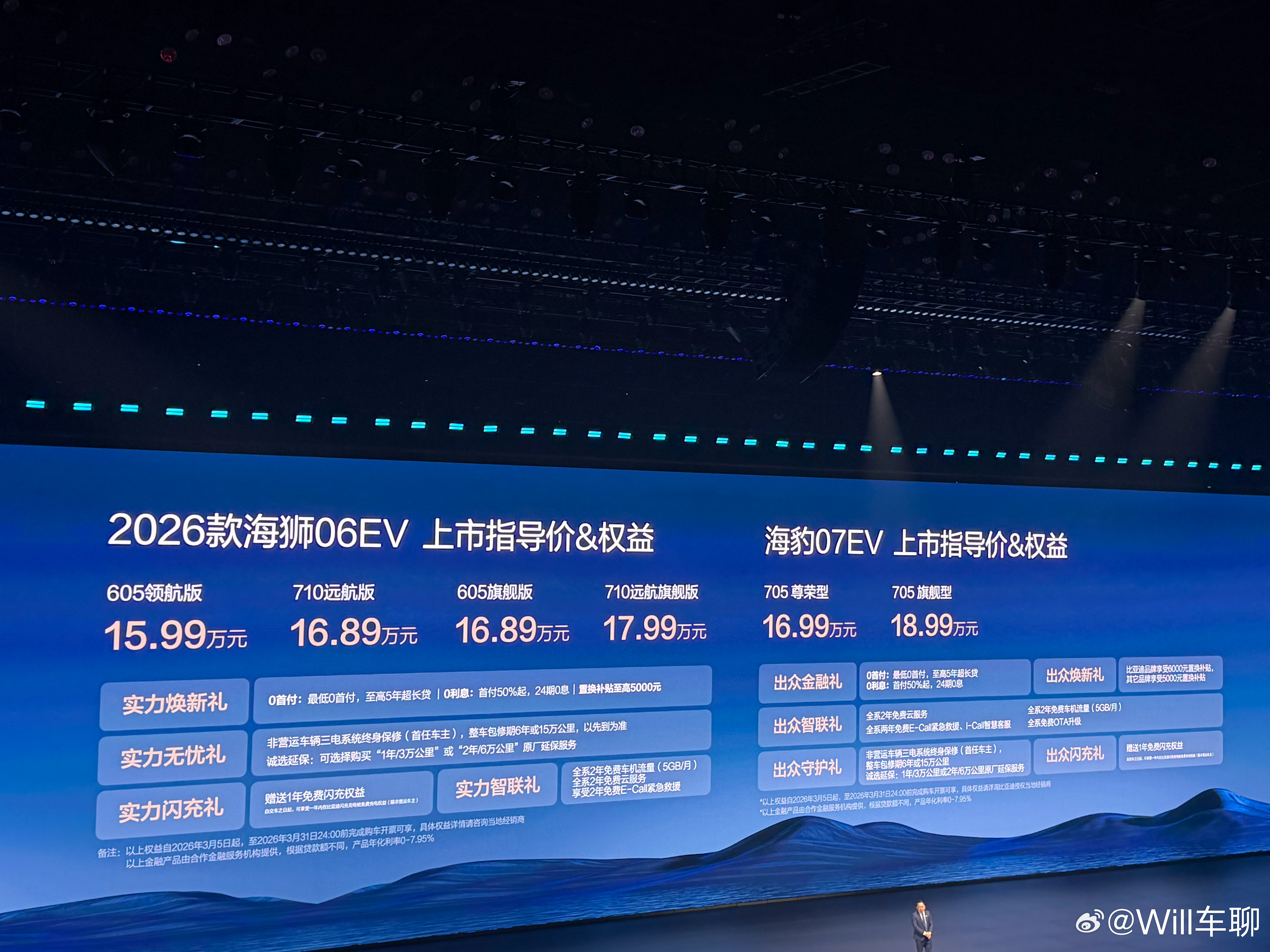 海狮06EV是15.99万起,海豹07EV是16.99万起。