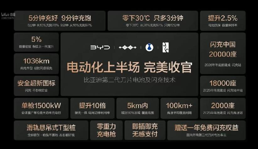 比亚迪发布会一开 电车的短板彻底被补齐了 全体起立! 5分钟充电70% 9分钟充电97% 续航1036km 要续航有续航,要补能速度有速度 一直被油车说的缺点,这下真没了 再加上各种智能化、智驾 简直不要太香 安全方面也有升级 而且承诺要在今年年底前,建成20000座闪充站,有2000个在高速上 跑长途再也不怕续航焦虑 这下真的后悔了[捂脸] 之前还老觉得比亚迪是网约车品牌,有点看不上 结果是真有技术和实力呀 除了车的颜值方面可能差点,其他真的没得喷 大家看完心动吗 下辆车考虑换比亚迪吗? 比亚迪兆瓦闪充 比亚迪超级闪充 比亚迪
