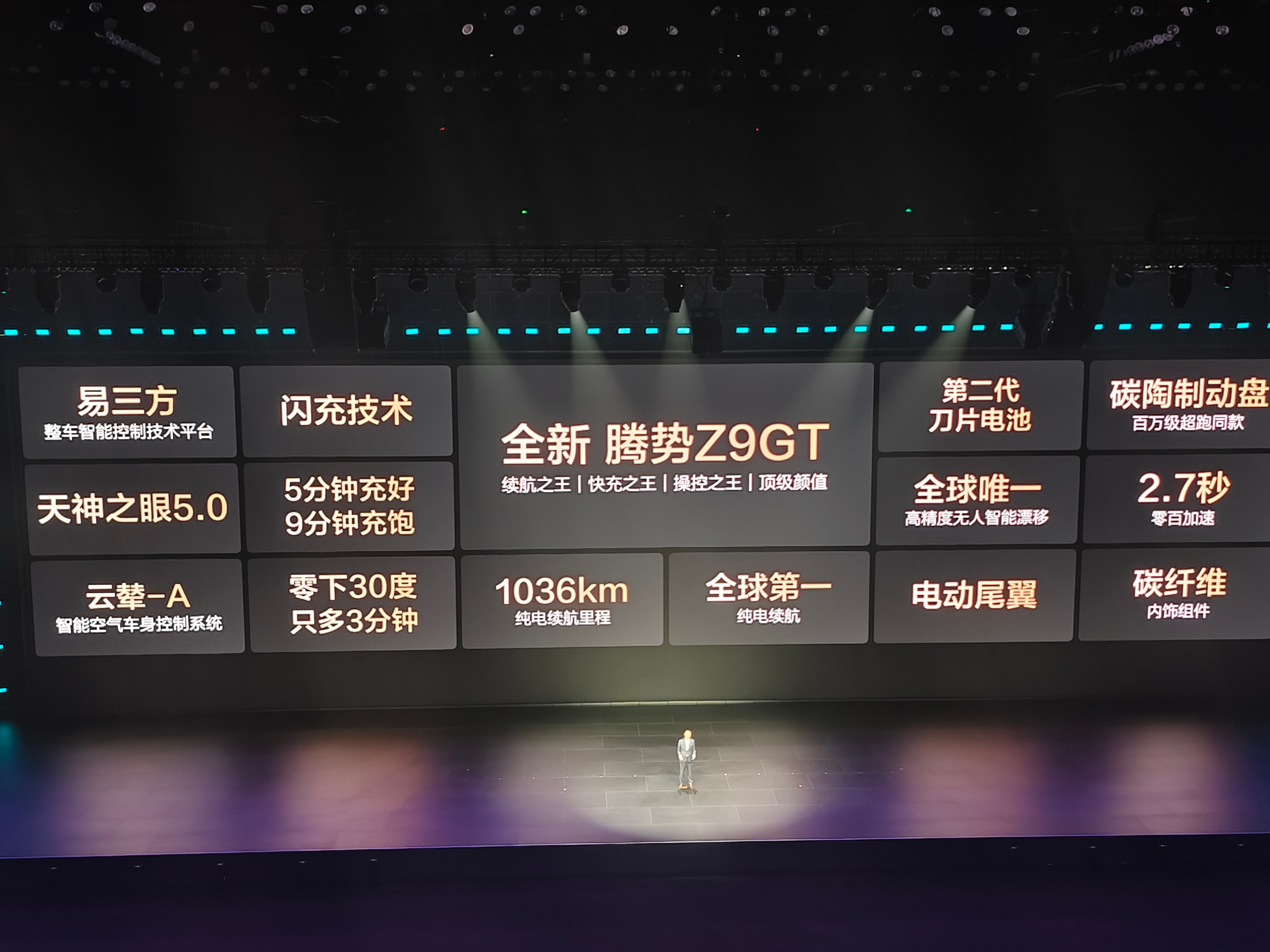 全新腾势Z9 GT搭载第二代刀片电池,带来了1036KM续航!充电10分钟,千公里续航。