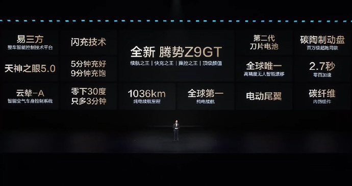 腾势Z9GT充电9分钟续航超千公里 新腾势Z9GT——这次直接把纯电续航干到1036km,还配9分钟快充,摆明了当价格屠夫。