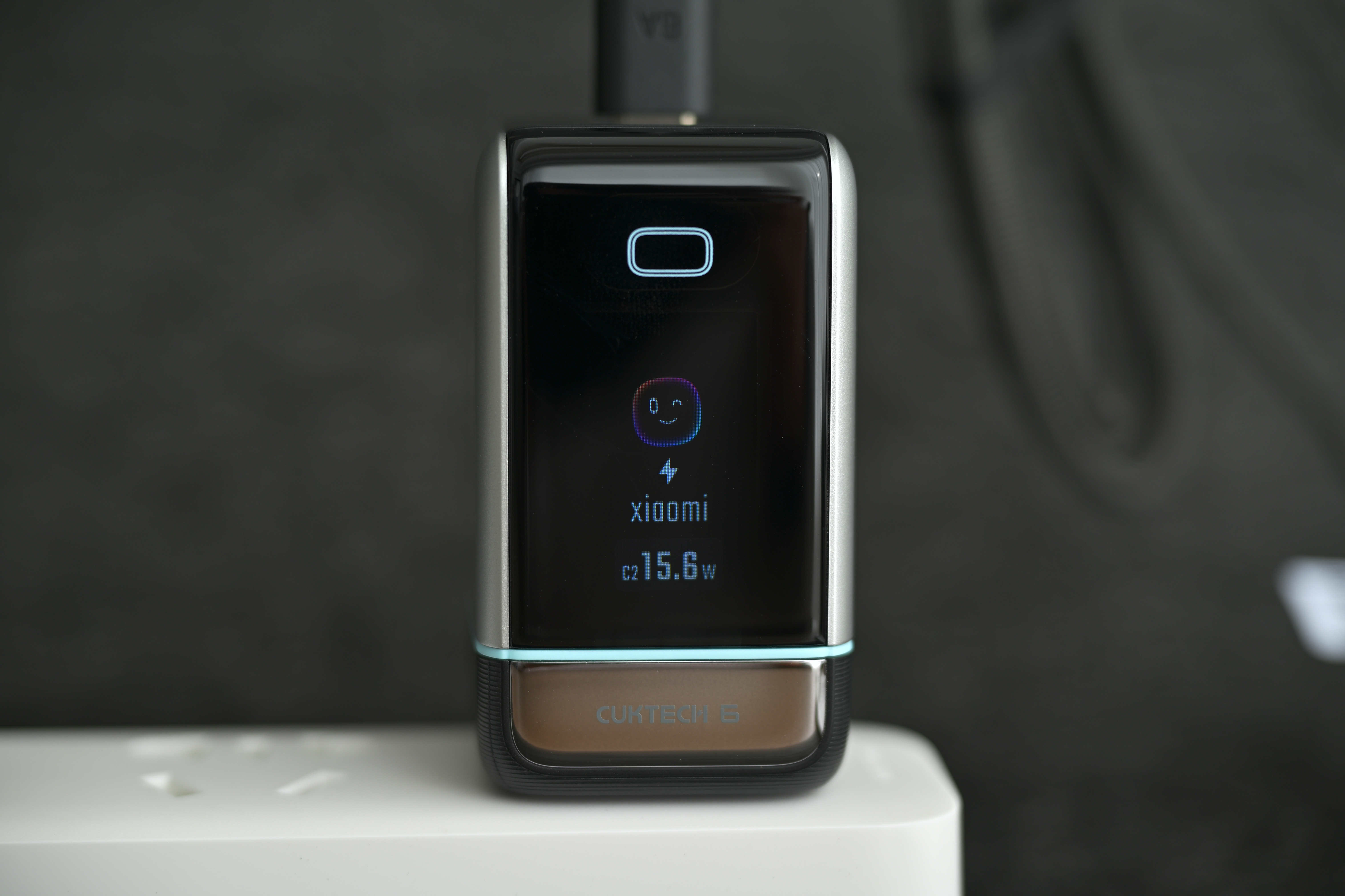 最显眼的当然是正面那块 0.96 英寸的小屏幕。它不仅能实时显示充电功率、电量等信息,还会出现一个叫 Cool bot 的小表情动态互动,让原本很“机械”的充电过程多了一点仪式感——某种意义上,也算是把充电设备做出了点数码产品的味道。