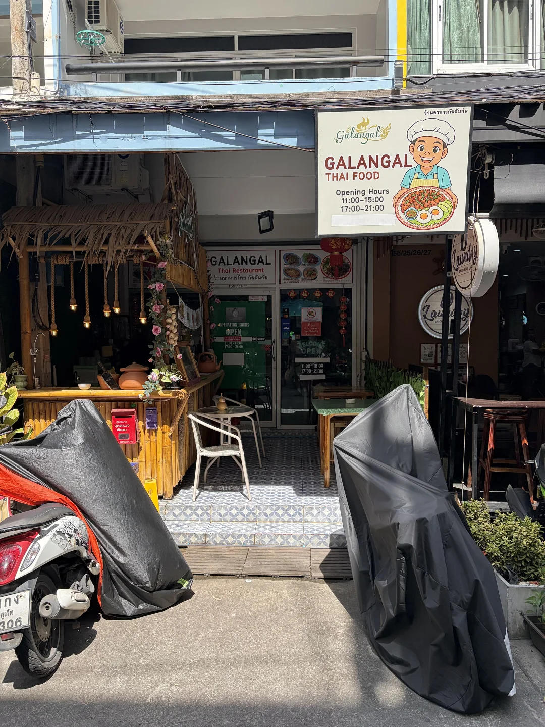 出国在外 上果然是 中国人不骗中国人 他家打抛饭真的挺不错的 可以选择分量 空心菜和炸鸡也不错! 🏠:Galangal