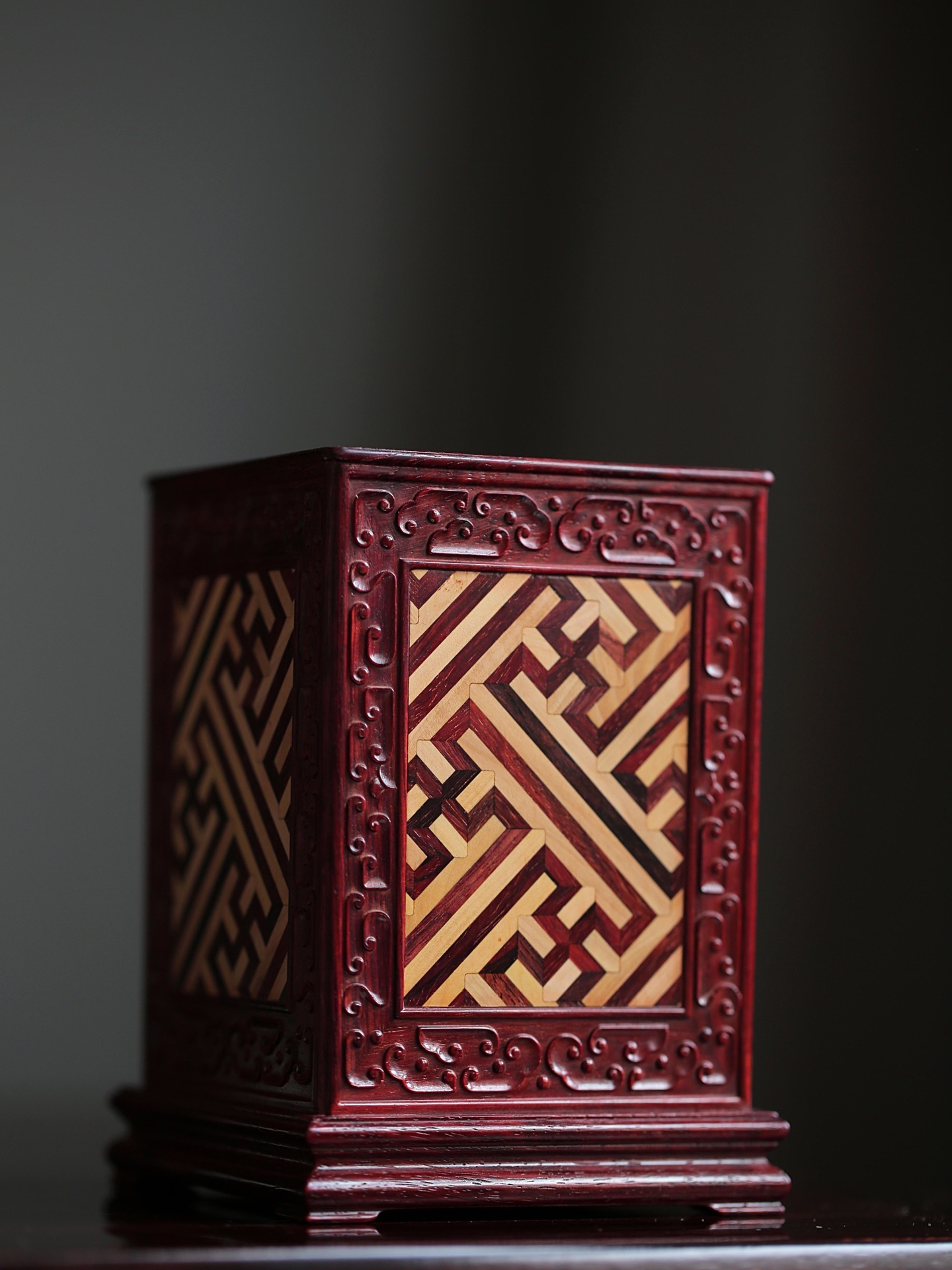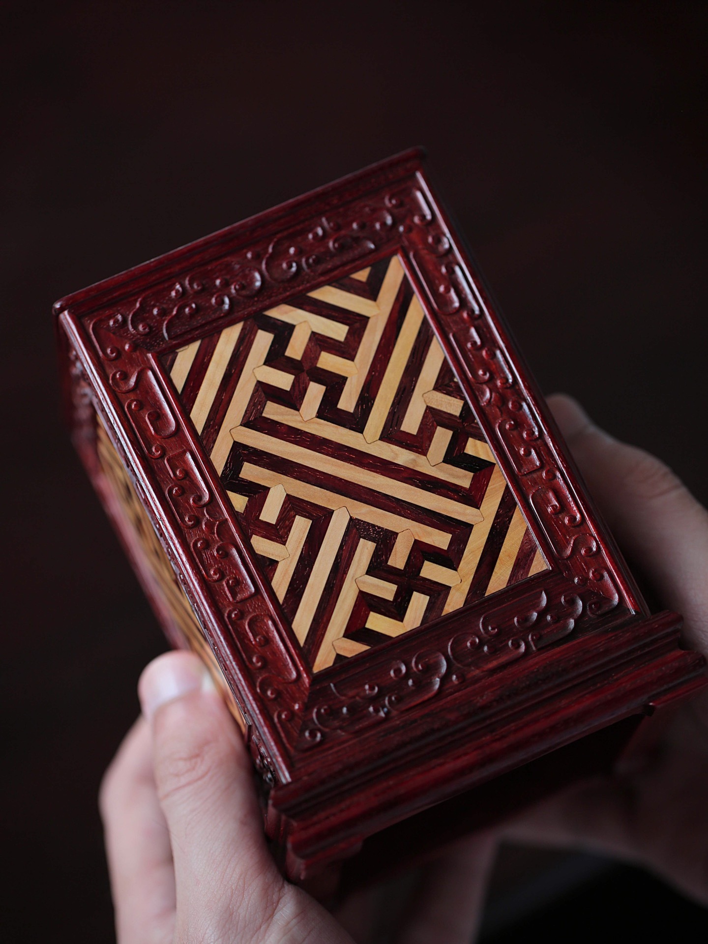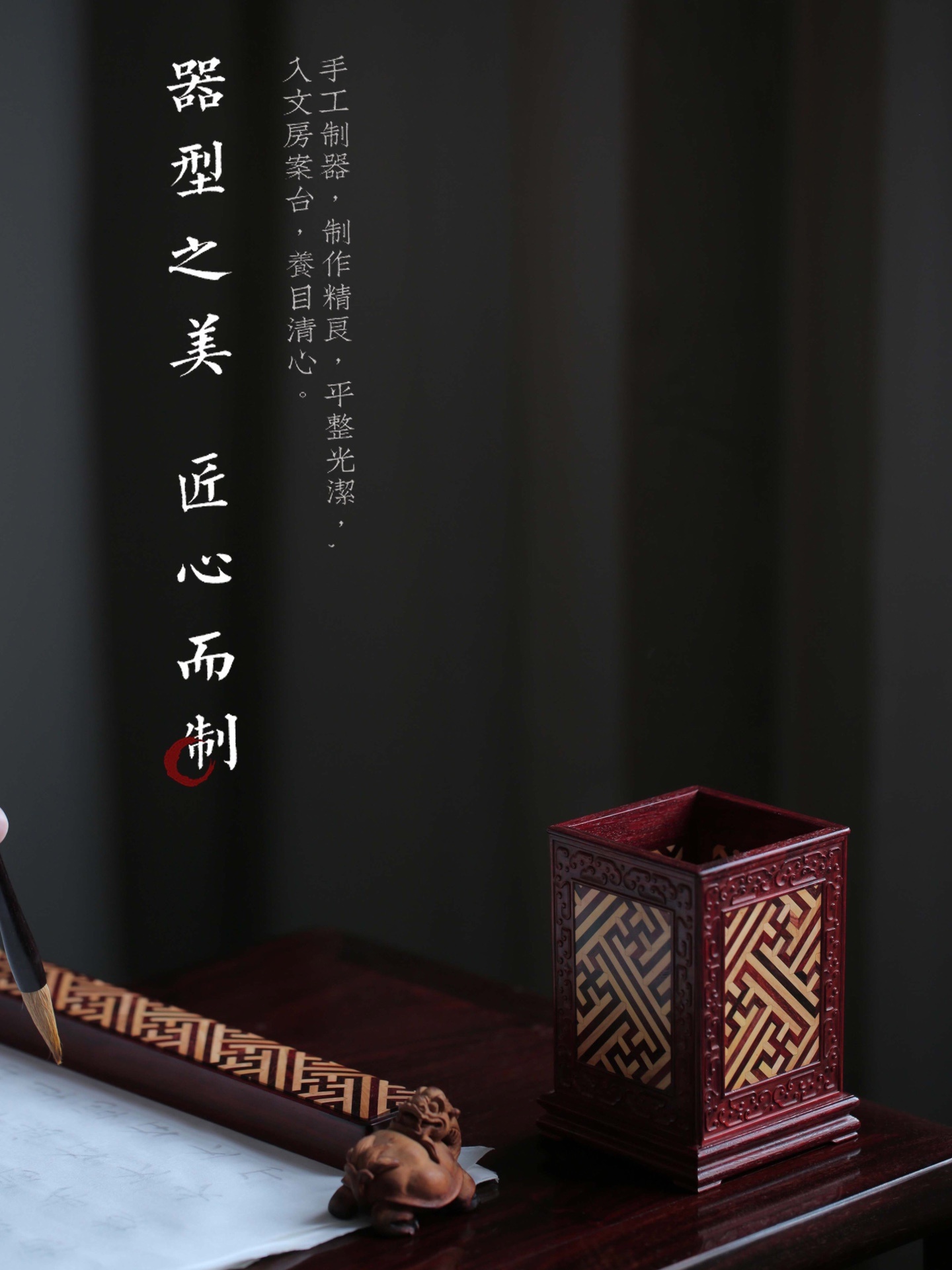 紫檀&黄杨木,榫卯镶嵌工艺,严丝合缝,寓意万福不断,富贵长绵;制作精良,平整光洁,入文房案台,养目清心。