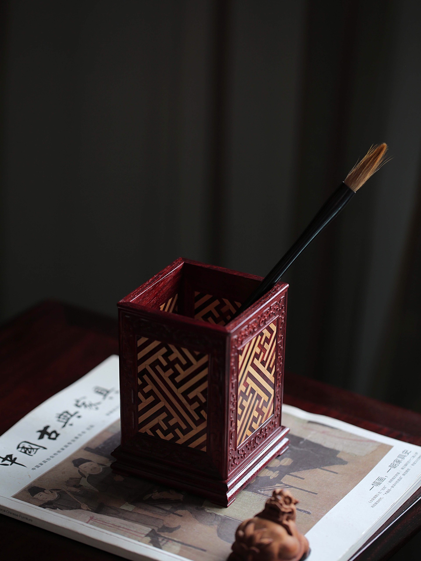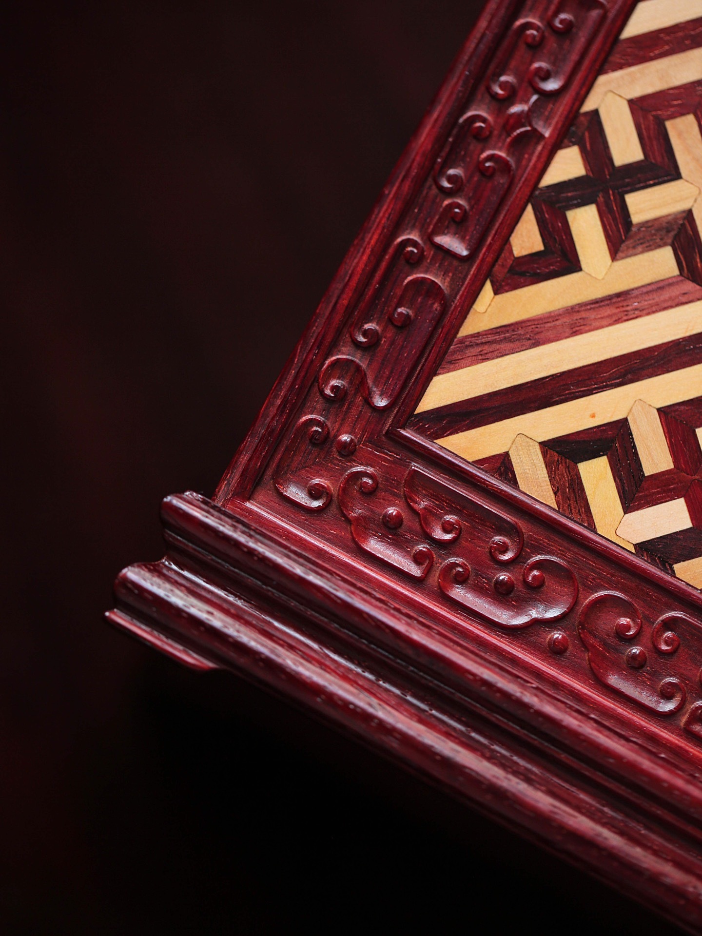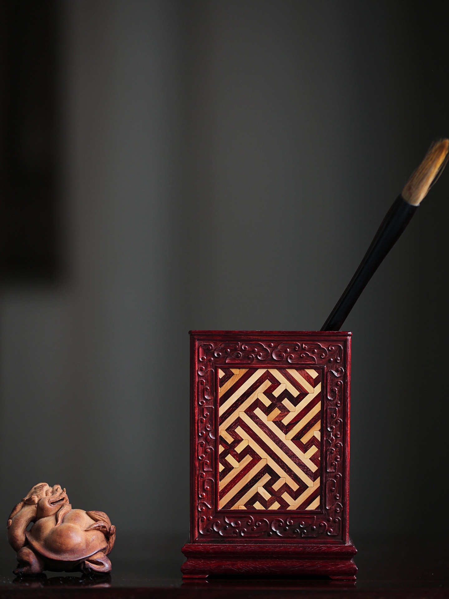 紫檀&黄杨木,榫卯镶嵌工艺,严丝合缝,寓意万福不断,富贵长绵;制作精良,平整光洁,入文房案台,养目清心。