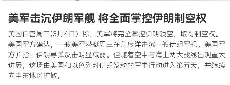 伊朗的情况有点不妙!伊朗反击发射的导弹数量明显下降了!3月5日,根据法新社报道,美军参谋长联席会议主席凯恩表示,根据美方数据,与战争首日相比,伊朗战术弹道导弹的发射数量已经减少86%,仅在最近24小时内就再下降 23%,与此同时,美国军方预计将在数小时内取得对伊朗领空的全面制空权,而伊朗的海军也遭遇到重创。 伊朗的导弹越打越少,为啥? 刚开始打的时候,伊朗铆足了劲,往以色列和美国在中东的军事基地猛砸导弹和无人机,想着用数量优势压倒对手。 但美国以色列的拦截系统可不是吃素的,很多导弹被拦下来,剩下的那些,真正能打到目标的也不多。 而且,美国还一直轰炸伊朗的导弹发射场和补给线,伊朗的“弹药库”可能快见底了,指挥系统也可能被破坏了,现在导弹越打越少,不是伊朗不想打,而是真的快打不动了。 除了导弹打不动,伊朗还面临两个大问题: 一是核设施被炸,国际原子能机构说,美国的轰炸把伊朗的福尔多和纳坦兹这些重要核设施炸得挺惨。 虽然伊朗还能搞点核研究,但短期内想恢复铀浓缩产能,基本没戏,核武器这张“底牌”被削弱,伊朗手里能压箱底的东西更少了。 二是经济快撑不住了,打仗太烧钱,再加上美国制裁,伊朗的非石油贸易额暴跌了3%,贸易量直接缩水12%,老百姓日子本来就不好过,现在打仗花钱如流水,伊朗政府的日子更难了。 现在美国以色列占了绝对上风,美国带着盟友搞多层防空网,把伊朗的导弹大部分拦下来,以色列则精准打击伊朗的军事目标,把伊朗的反击能力一点点拆掉。 对伊朗来说,现在特别尴尬:继续硬刚,损失会更大,服软吧,又怕丢了面子,以后在中东说话不响。 伊朗领导人的狠话还在喊,但实际动作已经跟不上嘴了——手里没牌,再硬的嘴炮也没用。 伊朗现在的困境,其实给很多人上了一课。 第一,现代战争太烧钱、太耗资源了,伊朗本来工业基础就弱,导弹打光了补充不上,后勤跟不上,再猛也撑不住。 第二,核设施这种“战略资产”其实很脆弱,一旦被炸,反而可能让对手抓住把柄。 第三,也是最关键的:打仗最受伤的是老百姓,油价飞涨、经济崩溃、平民死伤……这样下去,整个中东都会陷入恶性循环。 看现在的局势,伊朗再硬扛下去,可能亏得更惨,但直接认输也不现实,毕竟伊朗在中东也算地区大国,不能让人看扁了。 或许有个折中办法:用少量导弹保持威慑,别让美国以色列觉得好欺负,同时通过第三方和美国以色列谈条件。 这可不是怂,而是认清现实,对美国以色列来说,他们也不可能彻底消灭伊朗,一直打下去,自己也得花大钱,盟友也可能不耐烦。 所以,最聪明的办法,其实是双方都退一步,坐到谈判桌前,伊朗需要的是在尊严和生存之间找平衡,而全世界更需要智慧,别让中东彻底沦为战场。 说到底,导弹打得再响,也炸不出和平,现在伊朗和美国以色列面前,都摆着选择题:是继续赌上国运拼个你死我活,还是给和平一个机会?这场仗的未来,不仅看导弹飞得多高,更看人心能不能放下仇恨。
