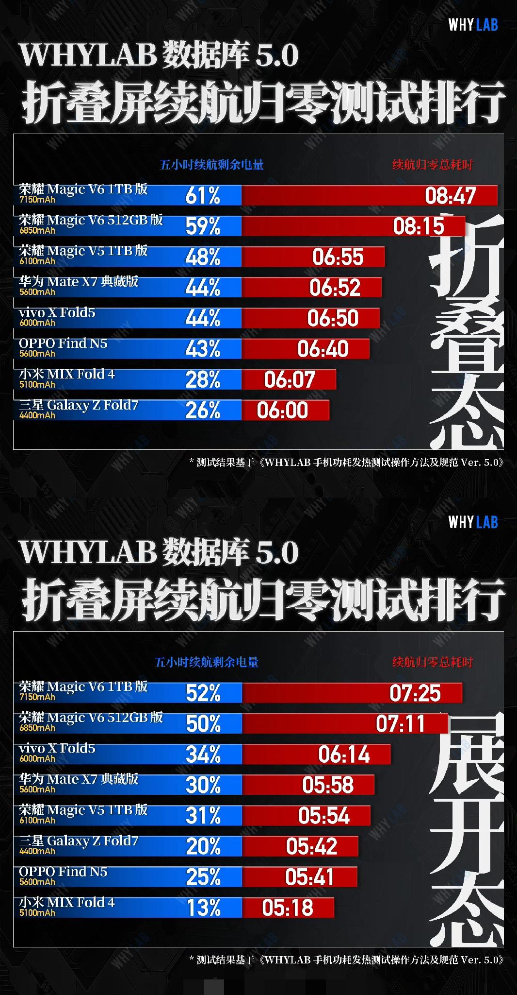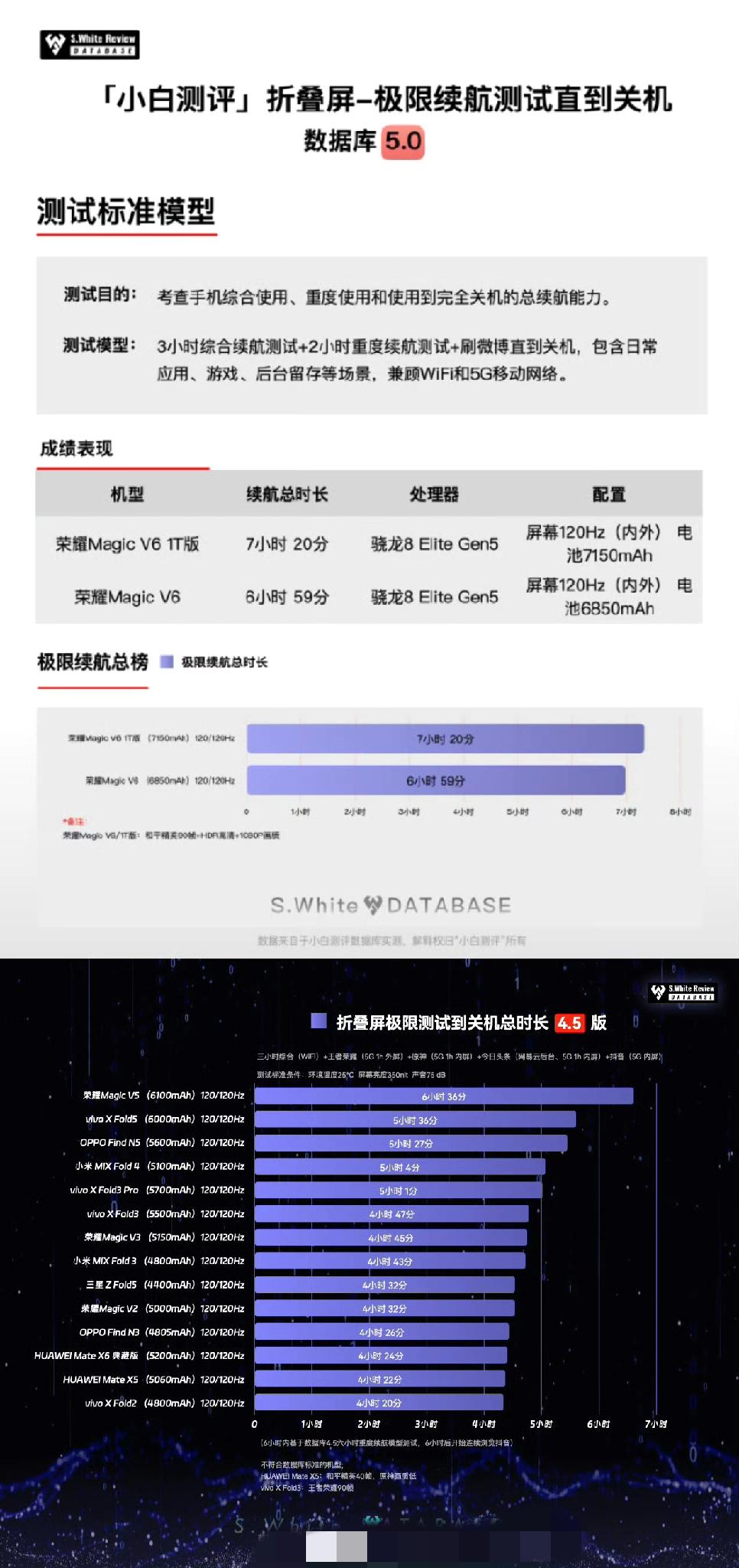 折叠屏电池进入7K时代,来看看这几家数码大佬家测试的结果吧。 毫无疑问的荣耀MagicV6续航第一双霸榜