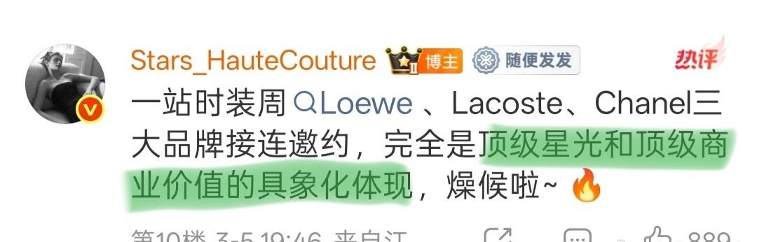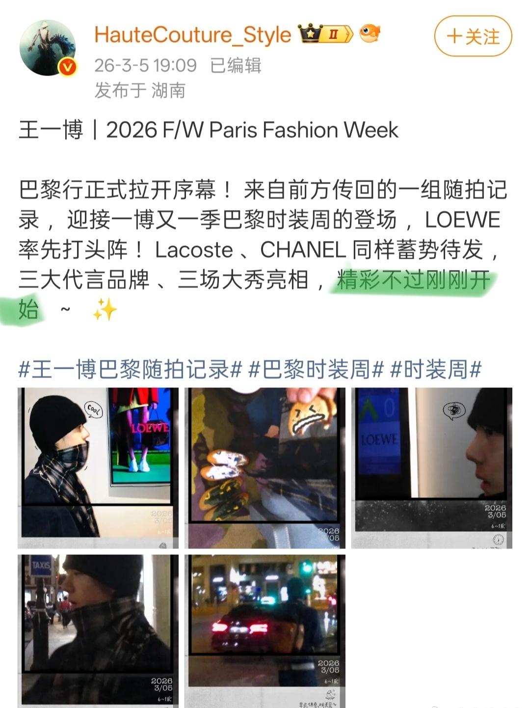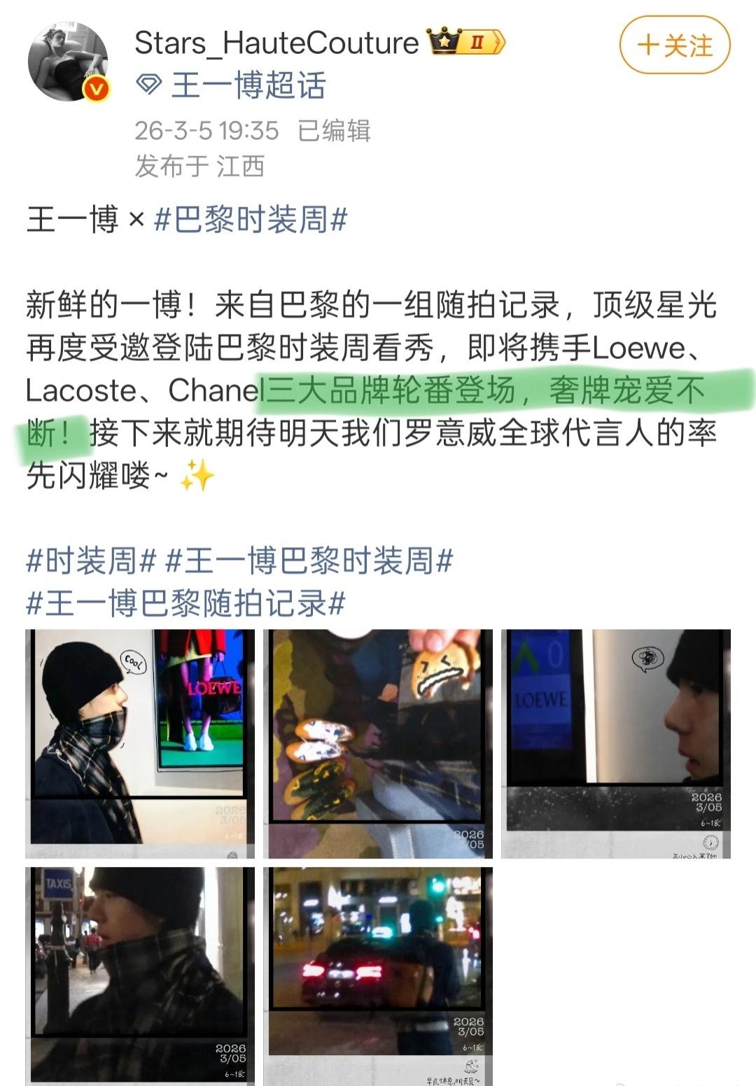 论夸人还得是时尚博主啊! “YiBo Show Time”、“看秀劳模″、“顶级星光”、“奢牌宠儿”~~ 都快夸出花儿了,各种溢美之词就像不要钱一样往出甩,比我们iBo还兴奋! 王一博巴黎时装周王一博超话 @UNIQ-王一博