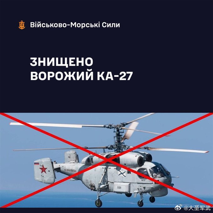 乌军称,今天在黑海击落俄军一架Ka27直升机。不排除是无人艇带的防空导弹击落的。关注俄乌局势最新进展俄乌冲突四周年俄乌冲突