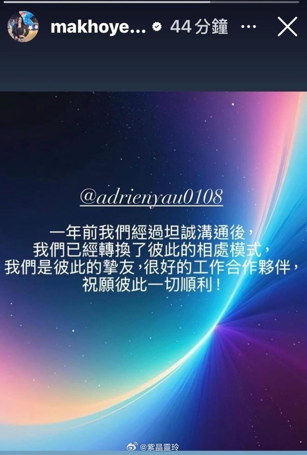 丘梓謙同時宣布分手。