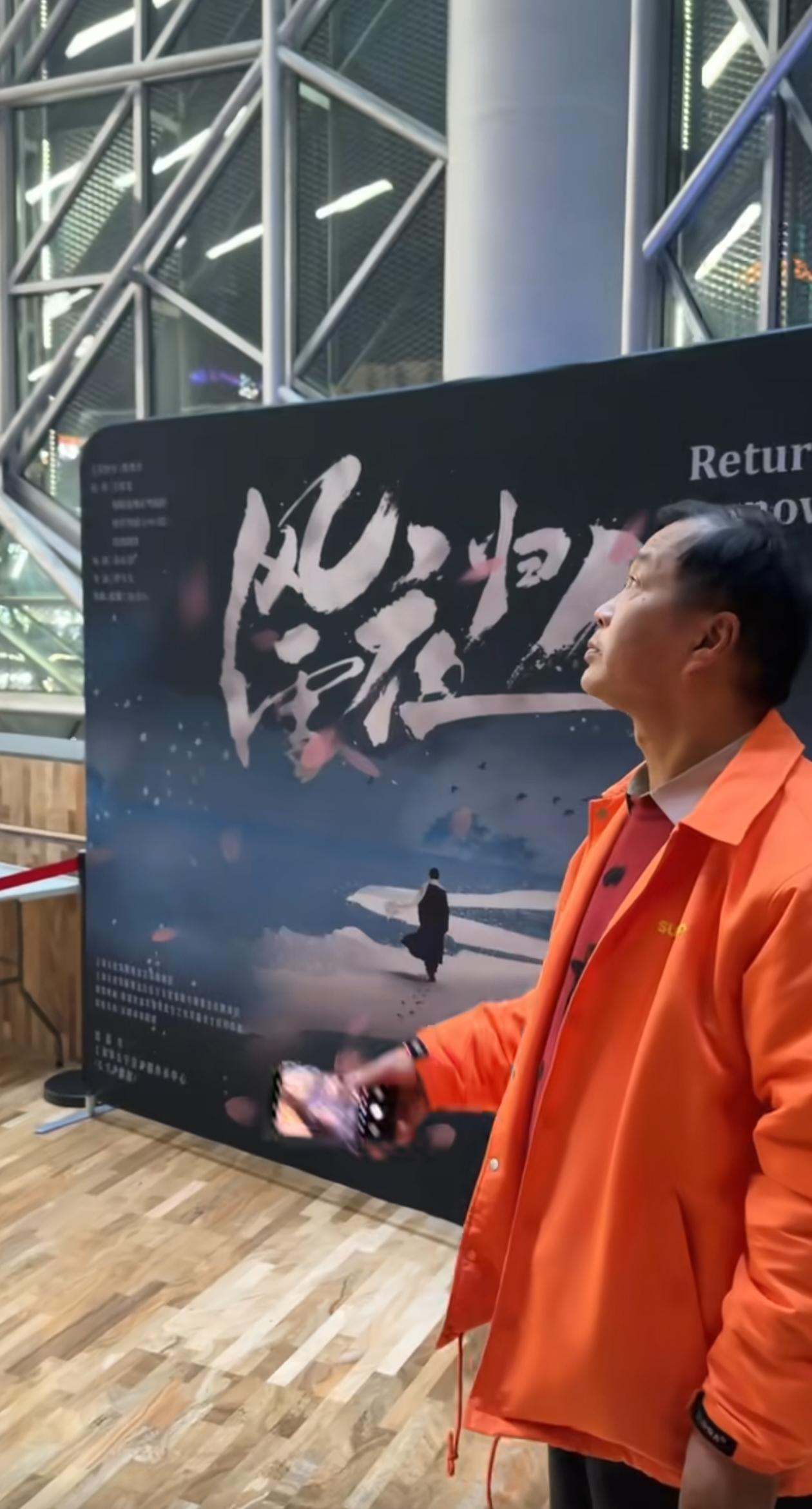 沈巍来到虹桥艺术中心,第一次在大剧院看沪剧,观看了改编创新版的经典沪剧《风雪夜归人》,全场人气爆棚,沈巍身着橙色耀眼上衣,聚精会神地欣赏表演,内心应该很激动,这可能是他梦寐以求的事,能现场欣赏大型艺术表演,三生有幸,也许他由此又有一些新感悟了。
