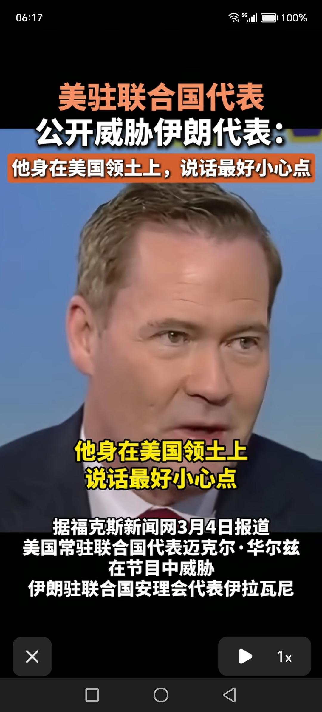 美国驻联合国代表华尔兹,公开威胁伊朗代表伊拉瓦尼。联合国不是美国的联合国,是世界各国的联合国。伊朗代表有权代表自己的国家发言,美国公开威胁,是对联合国的不尊重。在你的领土上,就要求说话小心点。就是因为联合国在美国,要不是这样,恐怕他们就不会去美国了。 美国应该遵守国际法,遵守联合国宪章,保护外国代表的人身安全。如果美国总在威胁他国代表,这样做严重损害了美国的名声。