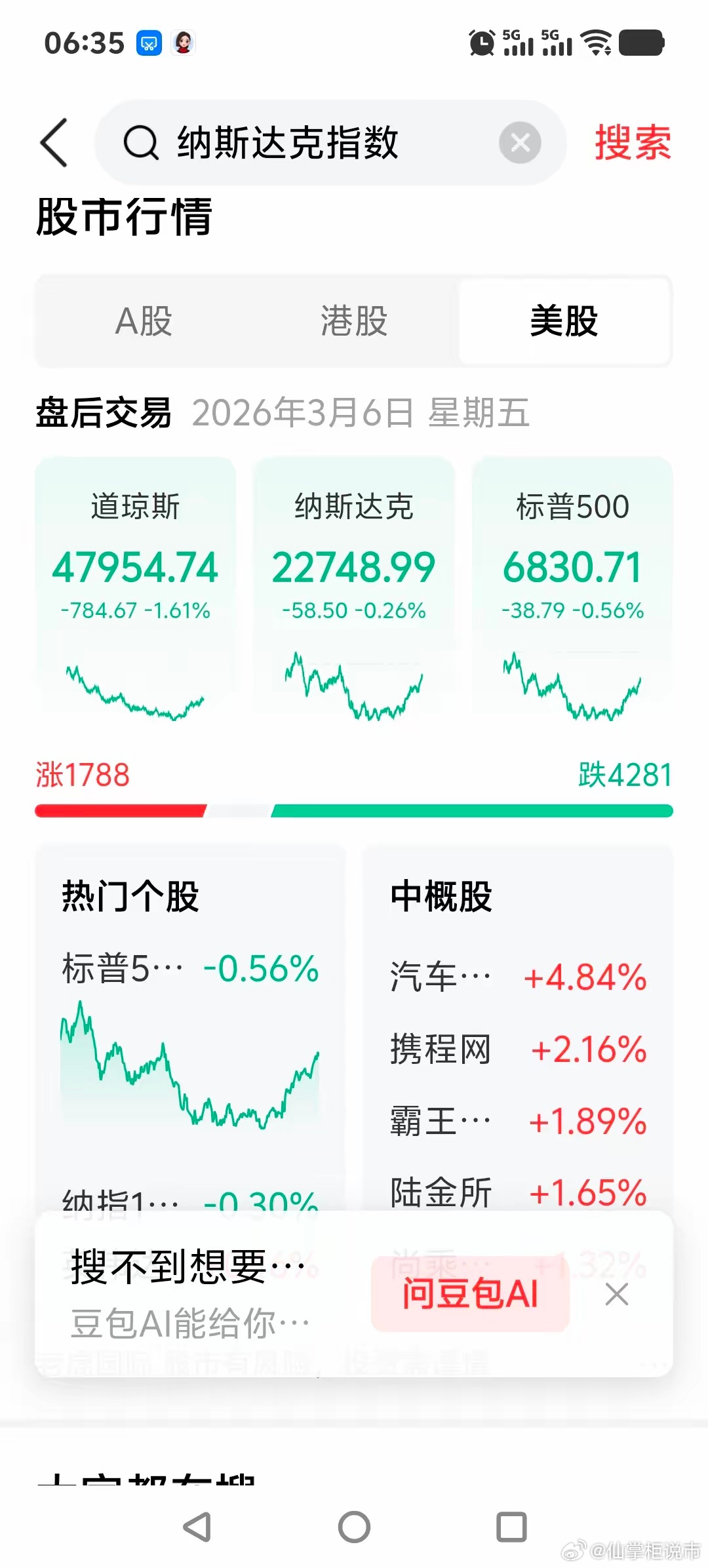 一觉醒来全球股市风向又变了!因受美以伊军事冲突继续的影响,资本市场避险情绪加剧。昨夜欧美股市几乎集体受挫,美股三大指数均收跌,道琼斯指数收跌1.61%纳斯达克指数收跌0.26%,标普500指数收跌0.56%。而夜盘的中国资产也未能幸免,纳斯达克中国金龙指数收跌1.43%报收6913点。富时A50期货指数连续夜盘收跌0.41%报收14545点。那么,今天我们的股市又将如何应对外围因素的影响呢?还是把结果交给大家来预判吧!