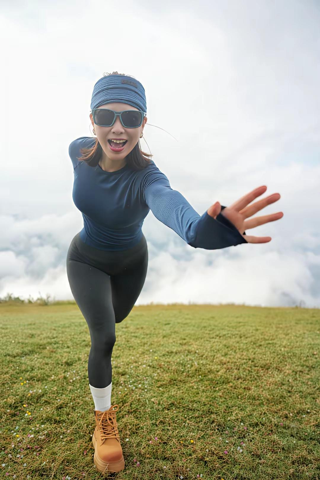 云海之下,碧绿草原上,自由伸展拉伸锻炼,拥抱自然,释放自我。展示完美身材,笑容太治愈了早起拉伸运动 草原漫步照 户外放松时间 瑜伽田野风光 晨起伸展 户外长高运动