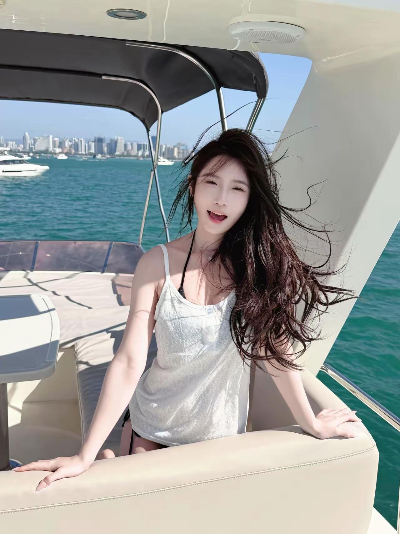 【临江仙·游艇海隅偶见】 远浦浮光凝碧鉴,晴丝拂过云帆。玉颜慵倚木兰船。发随沧海风,笑入蔚蓝烟。 不借丹青描秀色,天然风骨嫣然。一窗鸥影伴清欢。春心寄浩渺,醉里是仙山。