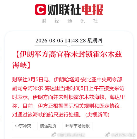 霍尔木兹海峡运输停滞以美袭击伊朗