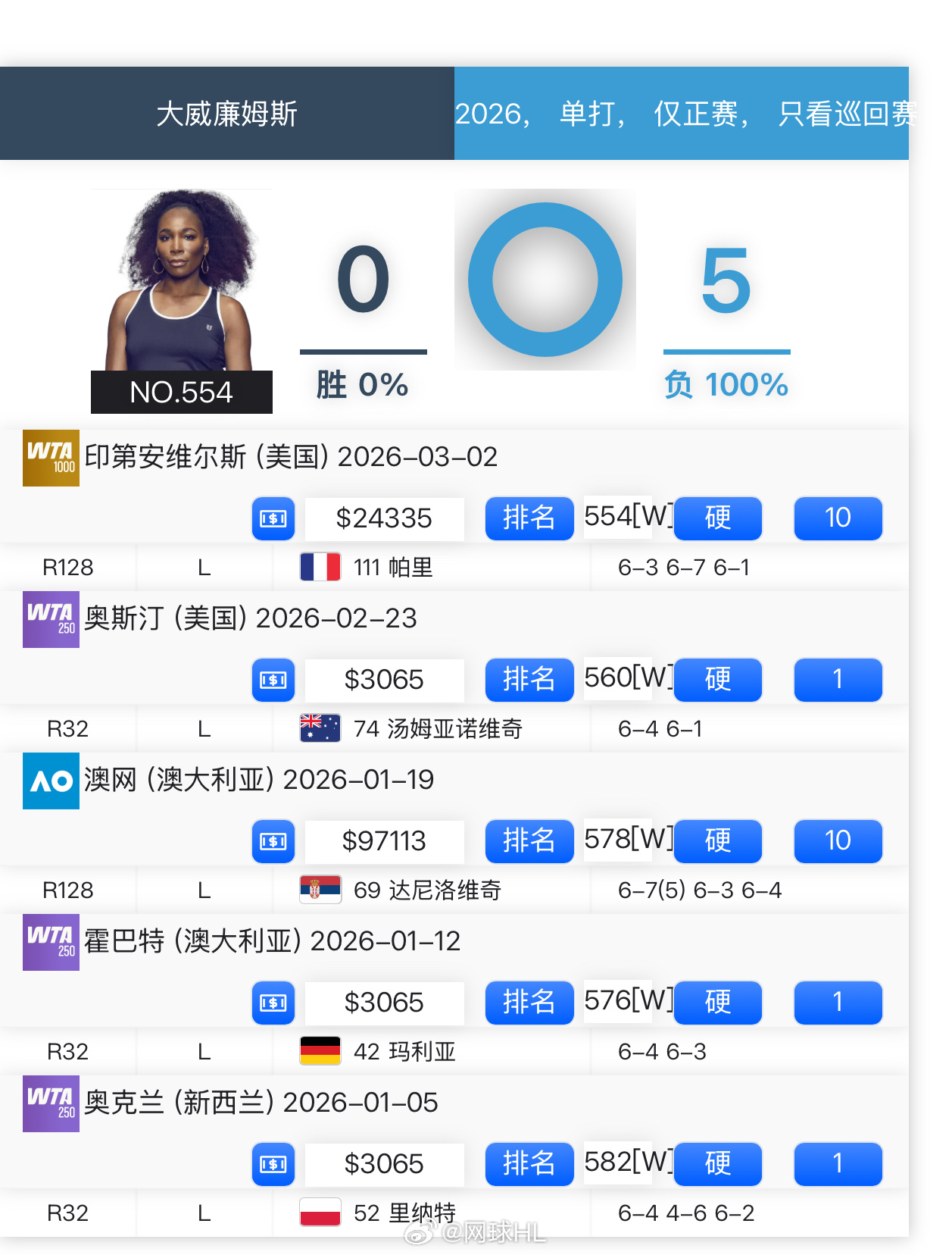 大威3-67-6(4)1-6不敌[Q]帕里本赛季0胜5负,下一站加油!网球t