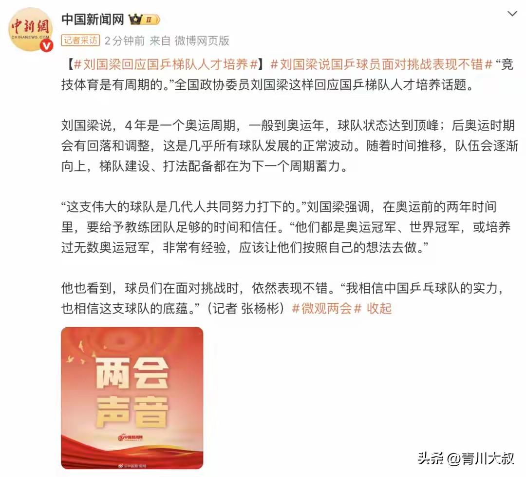 刘国梁也没想到,女乒会是这个样了? 刘国梁采访时说: 男乒一直以来都不稳定, 相对来说:女乒更稳定, 一支伟大的团队需要几代人的努力! 估计刘国梁没想到, 未来女乒比男乒压力还大! 陈熠和蒯曼在同龄中, 已经不稳了, 下一代女乒u19前十, 居然一个也没有!
