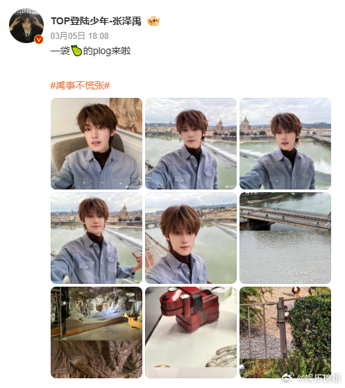 张泽禹一袋梨的plog来啦张泽禹你又幽我一默,一袋梨原来是谐音梗意大利哈哈哈哈,自拍超帅,多来点时装周星光速报