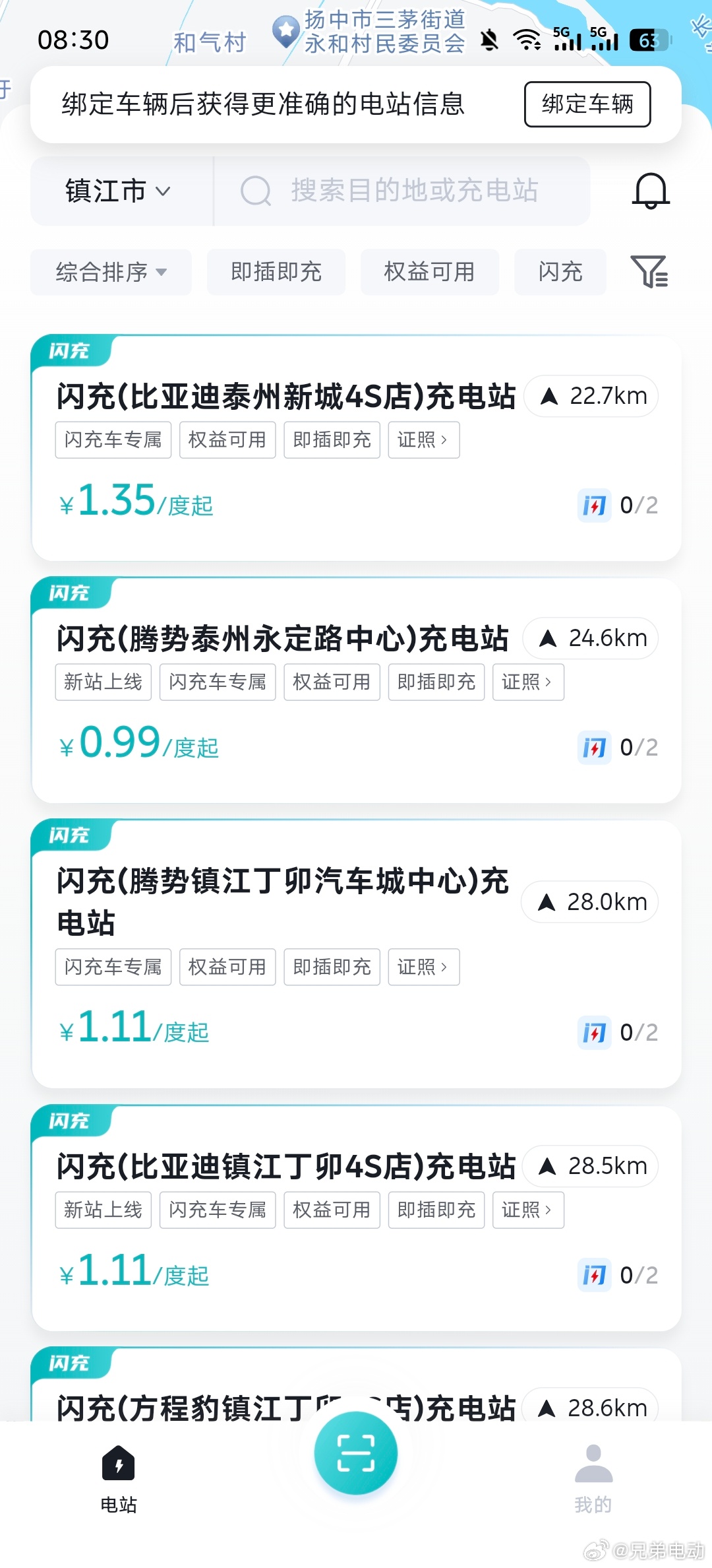 今天我第一次下载比亚迪闪充app查看了一下,准备去充电,发现居然我附近的泰州和镇江都已经有闪充站了,这件事已经不是喊口号,而是真的开始落地了。