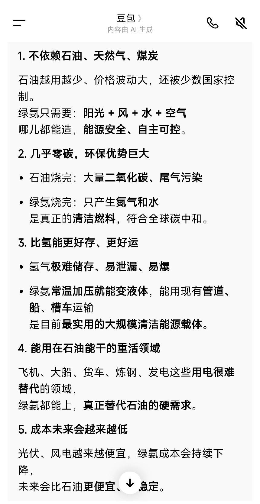 能源行业正迎来静默变革。 绿氨这类绿色燃料,开始动摇石油的地位。它用阳光、风、水和空气就能制造,不依赖石油或天然气。燃烧后只有氮气和水,几乎不产生碳排。储存和运输比氢气方便,现有管道就能用。飞机、大船这些耗能领域,它都能顶上。成本随着风光电降价,未来会更低。 但大规模应用还得看基建和投资跟进。能源自主的路,总得一步步走。