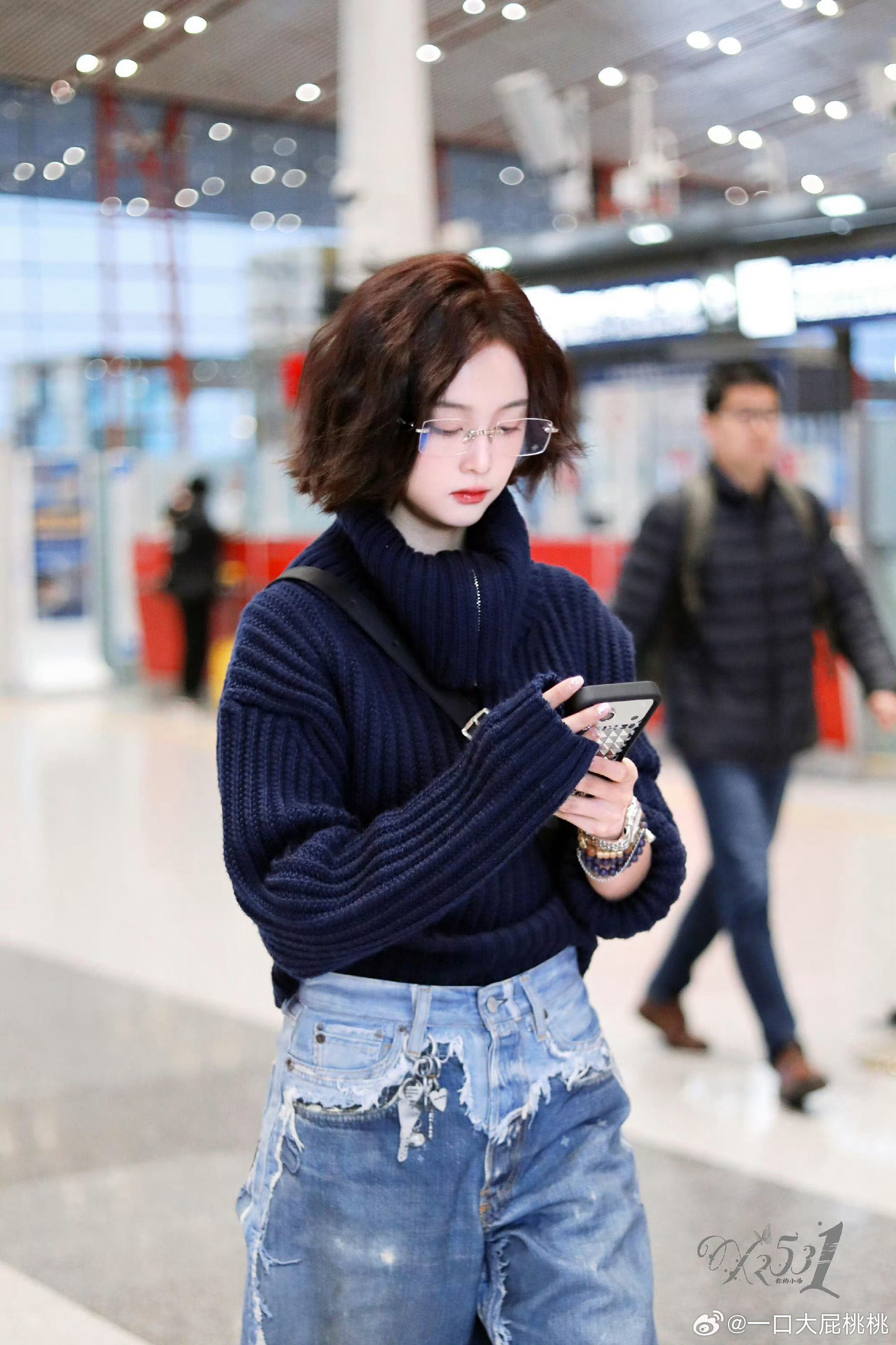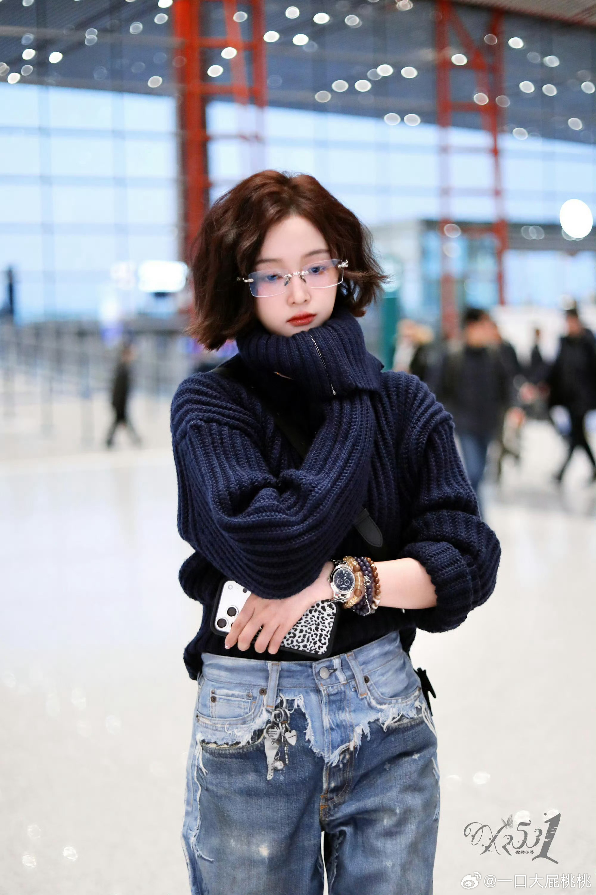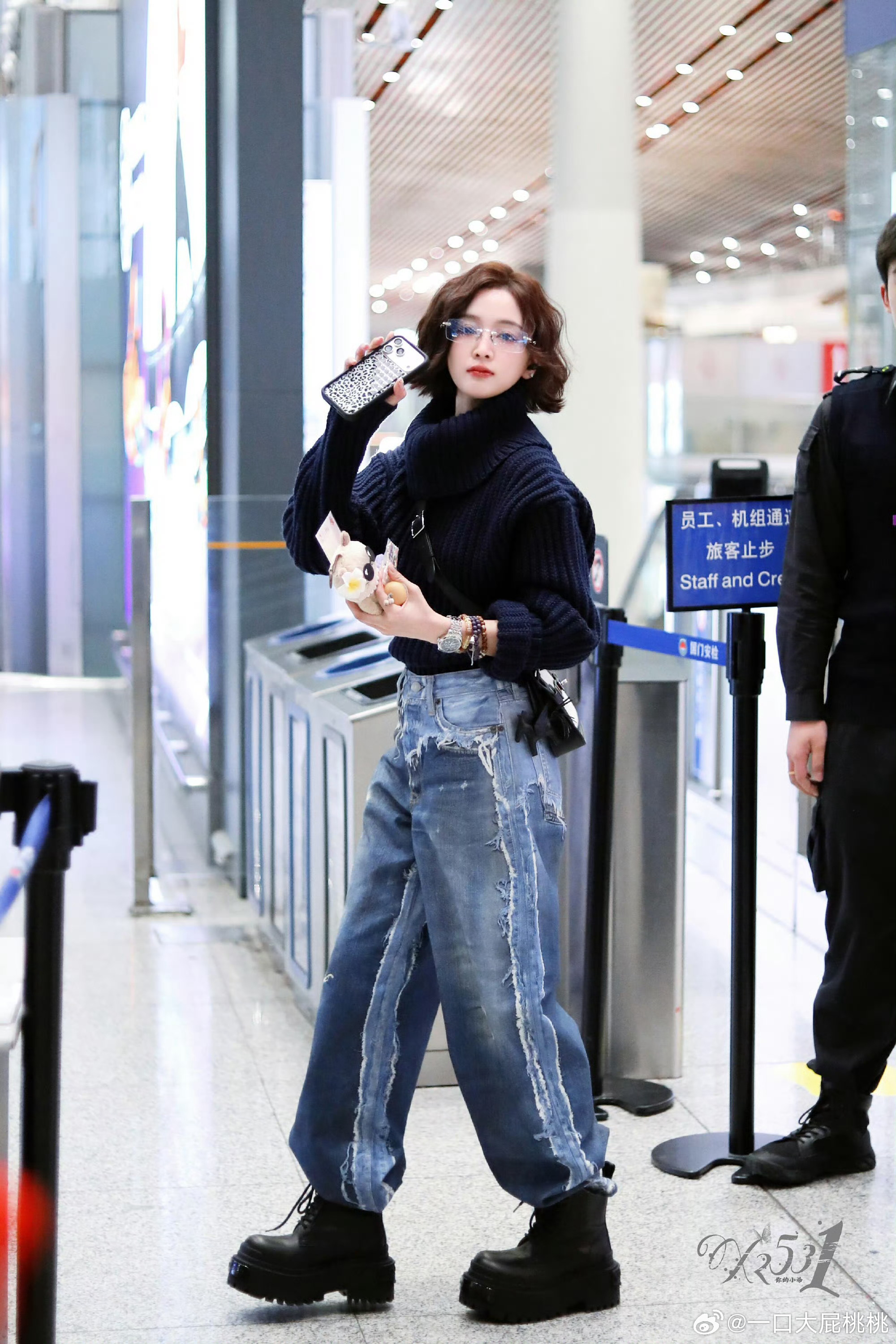 吴宣仪全新短发造型机场路透