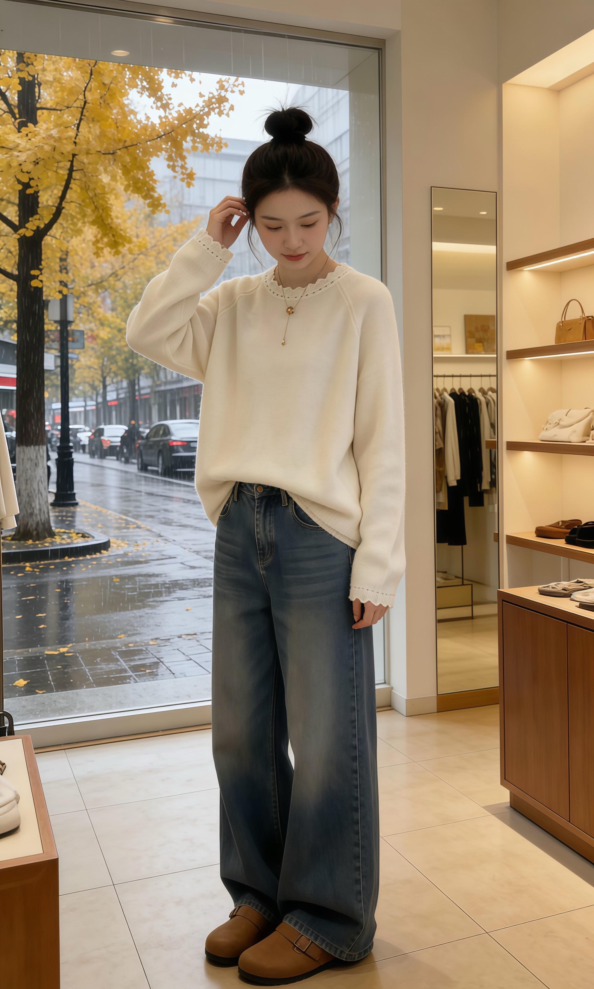 冬日暖阳下的优雅穿搭,白色大衣与灰色丝袜的完美搭配,尽显温柔与时尚。