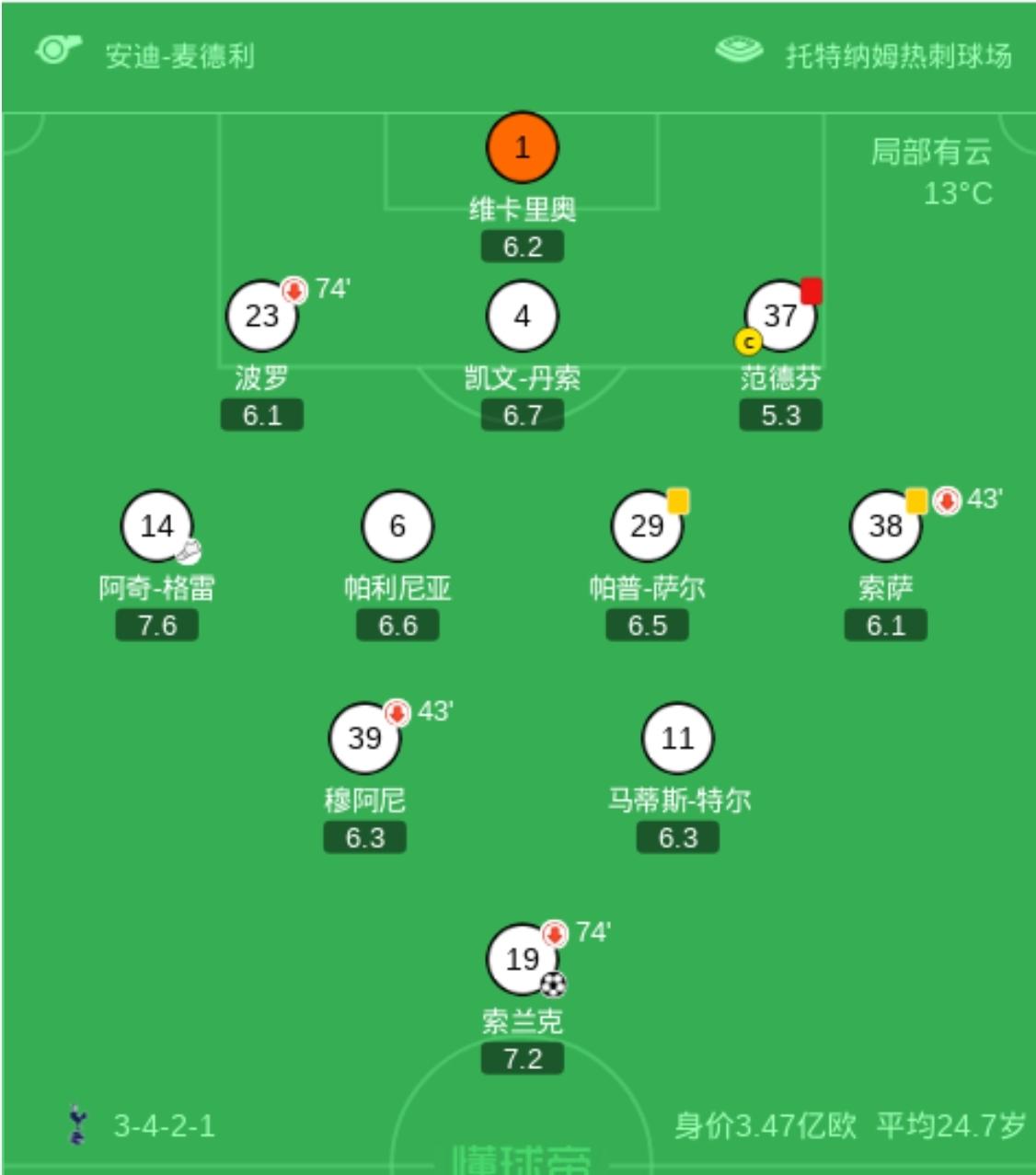 热刺又要为保级而战,沦落到如此地步,英超豪门是否怀念哈里凯恩+孙兴慜的年代? 热刺又输了,主场被水晶宫打了个3-1,雪上加霜的是,范得芬还拿了红牌! 上个赛季热刺以倒第四的英超排名保级,如今,本赛季的热刺目前排名倒第五,也没好到哪去! 5连败英超11轮不胜,尽管还苟活于欧冠,但这支昔日豪门事实上已经崩盘! 在失去哈里凯恩之后,依靠孙兴慜苦苦支撑,本赛季又没了孙兴慜,教练走马灯一般,热刺彻底迷失! 实际上,这支球队的实力并不是很差,就算是伤病多了些,但只要组织得当,应该可以有一定的战斗力! 可惜,核心球员流失,频繁的换教练,让这支球队失去了凝聚力,一盘散沙! 没有了灵魂,一群行尸走肉!