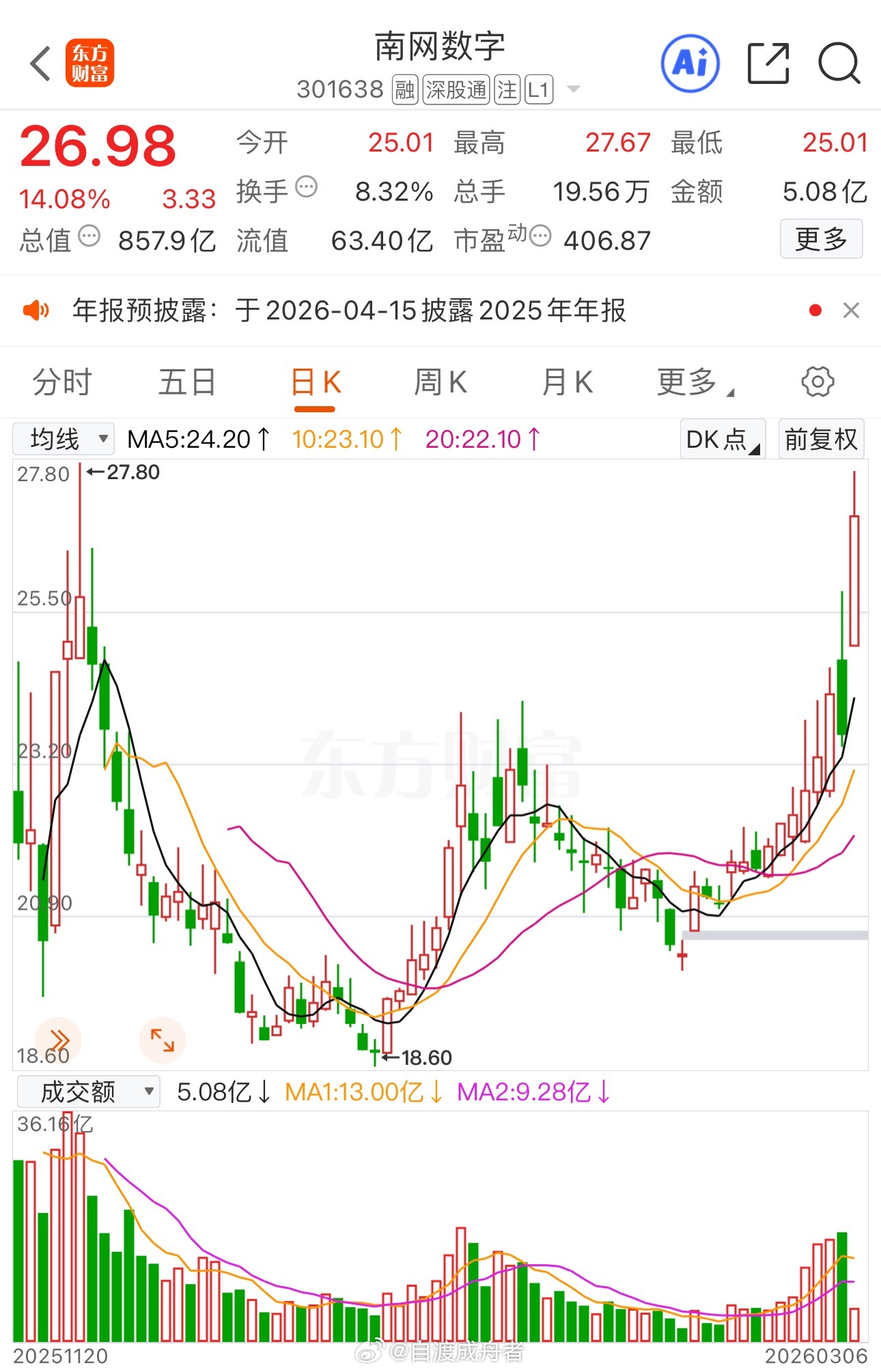 老粉应该知道,我守$南网数字 sz301638$ 很久很久了