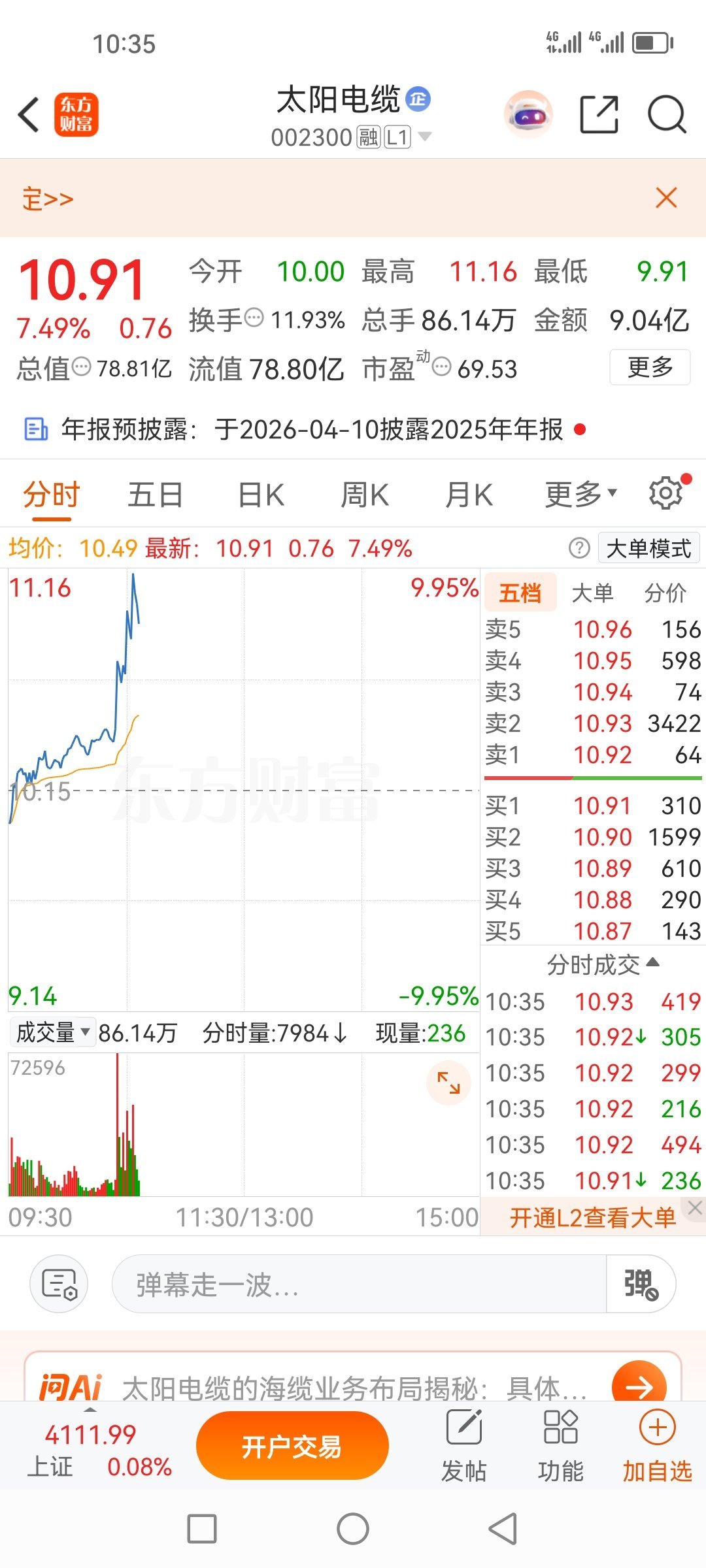 太阳电缆002300,起飞了,此时此刻有两首歌可以代表我的心声,我们唱着东方红,当家做主站起来!等了好久终于等到今天,梦了好久终于把梦实现!