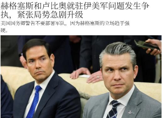 美国高层分歧浮出水面!鲁比奥与赫格塞斯发生激烈争吵!3月5日,根据美国AFPost报道,美媒称,美国战争部长皮特·海格塞斯和国务卿马可·鲁比奥在向伊朗部署美军的问题上“针锋相对”。双方为什么发生争论呢?根本原因是,鲁比奥反对派遣美国军队进入伊朗,并担心长期纠缠,而海格塞斯则支持可能的部署。 鲁比奥的反对,核心是算清了“投入产出账”。作为国务卿,他要站在全局外交视角考量,美国最新的国家安全战略早已把中东降级为“非核心区域”。 半个世纪以来美国紧盯中东,无非是为了石油和对抗,但现在这两个理由都站不住脚了。 美国通过页岩油革命变成能源净出口国,对中东石油的依赖度降到历史低点,没必要再为能源安全重兵布局。 更关键的是,美国的战略重心已经转向亚太,那里贡献了全球近一半的购买力平价GDP,是与主要竞争对手展开近对等竞争的核心场域,有限的资源必须集中投向这个“21世纪关键战场”。 鲁比奥清楚,一旦美军陷入伊朗,就可能重蹈伊拉克、阿富汗的覆辙,成为难以抽身的资源消耗黑洞。 过去两场战争让美国花了超过8万亿美元,国内民众早已厌战,超过57%的美国人支持减少海外军事干预,年轻人和中产更关心就业、教育等国内问题,这种民意压力让他不敢轻易主张驻军。 更何况,伊朗不是弱小国家,拥有弹道导弹和无人机技术,霍尔木兹海峡被其掌控,真要驻军很可能引发全面冲突,打乱美国整个全球布局。 海格塞斯的支持,则源于军事层面的现实顾虑和利益绑定。 作为战争部长,他更关注即时安全威胁和军事威慑效果。 伊朗的核问题始终是美国及其盟友的心病,尽管国际原子能机构证实伊朗没有制造核武器,但该国的核技术发展让以色列等盟友深感不安。 美国在中东的核心利益之一就是确保以色列安全,海格塞斯认为,适度军事部署能对伊朗形成威慑,阻止其核能力进一步升级。 同时,海湾地区的盟友也在施压,希望美国保持军事存在以稳定区域局势。 从军事逻辑来看,海格塞斯担心如果放弃部署,美国在中东的影响力会快速下滑,伊朗及其区域盟友的势力会趁机扩张,甚至威胁霍尔木兹海峡的航道安全,这是美国无法接受的底线。 此外,美国军工复合体的利益也不容忽视,军事部署意味着更多的武器订单和防务投入,这背后牵扯着庞大的产业利益,作为战争部长很难忽视这种隐性诉求。 两人的分歧还反映出美国国内的政治派系博弈。 鲁比奥属于共和党传统保守派,虽然是外交政策鹰派,但更注重战略收缩和成本控制,符合特朗普政府“低成本外交”的核心逻辑。 特朗普第二任期的国家安全战略明确提出,要以更低成本维系全球主导地位,中东不再是外交优先项,只需守住能源航道、反恐怖主义等核心利益即可。 而海格塞斯更贴近军方和新右翼的思路,主张通过强硬手段维护威慑力,这种分歧本质是共和党内部传统保守派与新右翼之争的延伸。 更深层的原因是美国国力约束下的两难选择。 美国国债已经突破34万亿美元,财政赤字高企,根本无力维持“全球撒网”式的军事存在。 过去两年美国向乌克兰提供的军事援助就超750亿美元,占年度国防预算近5%,再加上其他地区的投入,资源早已捉襟见肘。 鲁比奥担心的“长期纠缠”,本质是怕美国在国力相对下降的情况下,被非核心区域的冲突拖垮。 但海格塞斯顾虑的是,一旦军事存在缺位,美国在中东的盟友体系可能松动,海湾国家可能被迫调整外交政策,甚至与其他大国加强合作,这会间接削弱美国的全球影响力。 这种分歧还牵扯到美国对中东的介入方式转型。 新版战略已经明确,中东主导美国外交的时代结束,美国要从“军事干预”转向“经济合作”,推动中东成为美国能源、AI、防务技术的出口市场。 鲁比奥显然是这种转型的坚定执行者,他反对驻军是为了避免破坏这种转型节奏。 而海格塞斯则认为,军事存在是经济合作的安全保障,没有足够的军事威慑,美国企业在中东的利益也难以维护,这种理念差异让两人难以达成共识。 值得注意的是,双方的争论都避开了“全面入侵”的选项。 鲁比奥强调现阶段没有地面入侵计划,海格塞斯也明确表示目前没有美军地面部队进入伊朗,这说明两人都认可“有限介入”的原则,只是在“是否部署”这个临界点上存在分歧。 这种共识背后,是美国对中东“收缩而非退出”的整体定位,既要减少投入,又要维持影响力,这种矛盾让高层在具体政策上难以平衡。 美国在伊朗驻军问题上的内部争吵,最终暴露的是超级大国的战略焦虑。 一方面想收缩非核心区域投入,聚焦真正的竞争焦点;另一方面又怕影响力下滑,不敢轻易放弃军事威慑。 鲁比奥和海格塞斯的针锋相对,不过是这种焦虑在决策层的直接体现,而这种分歧还会随着美国战略调整的深入持续存在,影响着中东地区的安全局势走向。