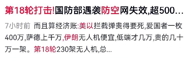 伊朗发动第18轮致命打击!弹无虚发,美以防空彻底撕碎🔥 伊朗第18轮反击堪称教科书级别,230架无人机精准突袭,美军基地接连瘫痪,萨德反导系统被直接摧毁,中东防空网全线破防。以色列本-古里安机场、国防部大楼遭重创,指挥中断、民航停摆,所谓绝对安全彻底破碎。 中东抵抗之弧同步发力,四面围攻让美以陷入多线苦战。伊朗总统向海湾国家发出呼吁,主张地区自主、拒绝霸权裹挟,赢得多国中立回应,美以围堵计划彻底落空。 伊朗用实力证明:反抗才有尊严,硬刚才换和平。霸权横行的时代已经结束,中东的天,真的变了! 伊朗第18轮打击 中东局势 美以冲突