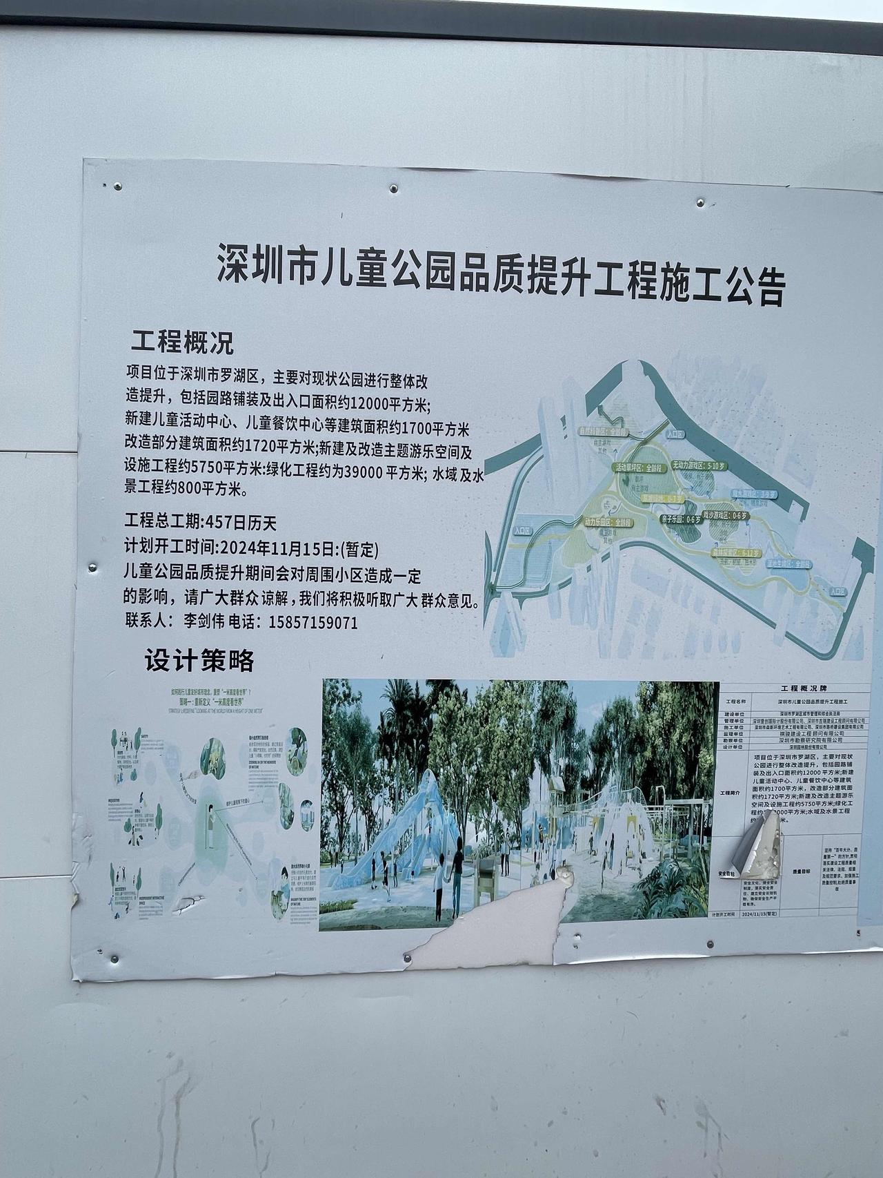 升级改造后深圳市的儿童公园的东南大门还是没有电梯啊?位于罗湖的深圳儿童公园因为地形原因,东南大门与公园落差比较大。改造之前推着童车去公园的宝妈宝奶奶经常在进公园的时候在大门口徘徊,请求路人帮忙将童车抬下去。大门的落差大约有一层半楼,进出都要请人帮忙。力气大的人可以一手抱孩一手拎车,力气小的人就没有办法了,只好请人帮忙。这次终于升级改造了,我以为一定会安装电梯的。没想到今天隔着施工围栏看了一下,还是没有安装电梯的任何迹象。现在还在施工阶段,希望有关部门看见以后立即修改施工方案,在东南大门口安装电梯,方便携带儿童入园为感 我新发布的内容被官方推荐啦!👍你也快来发布一条吧!带