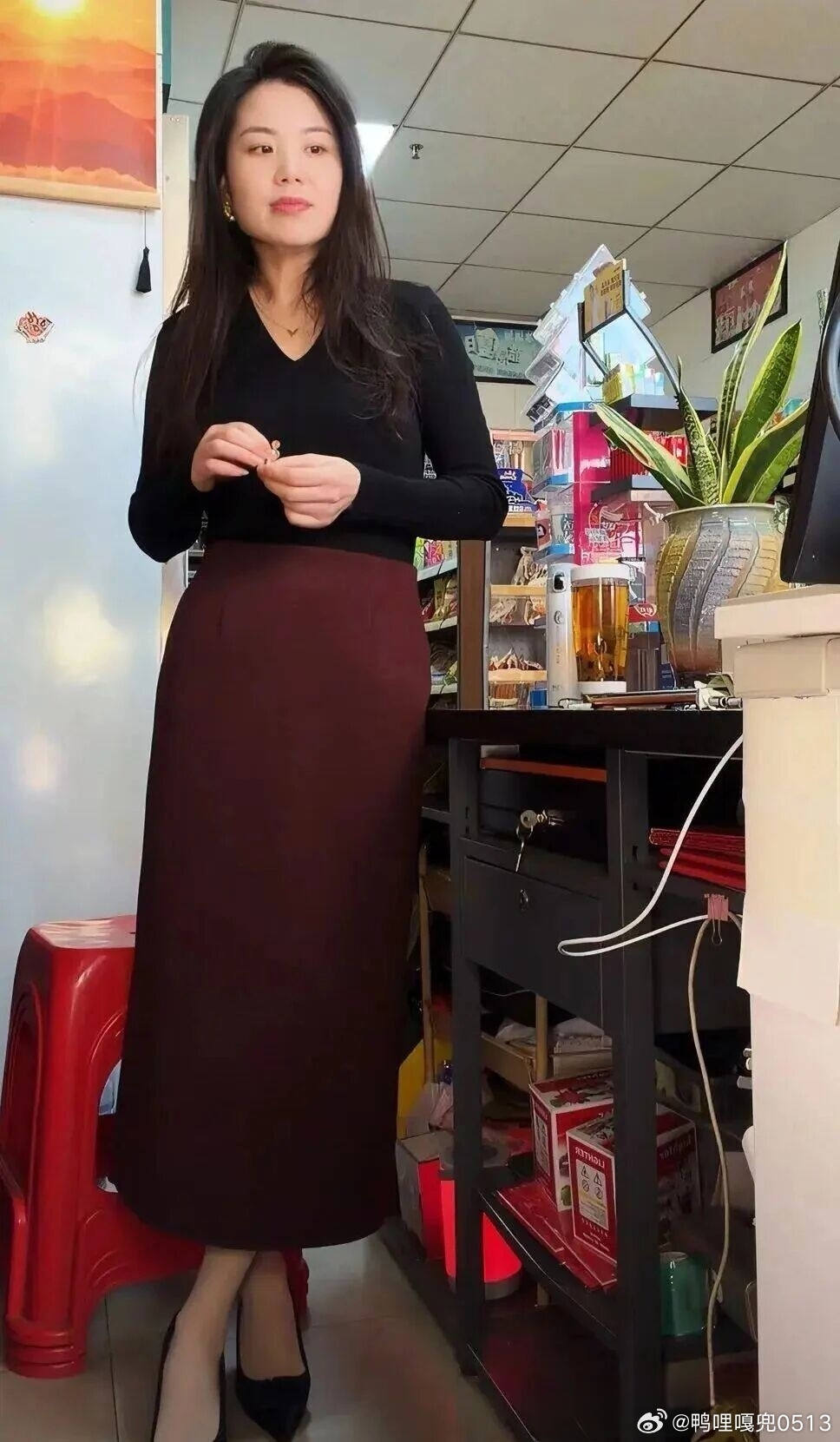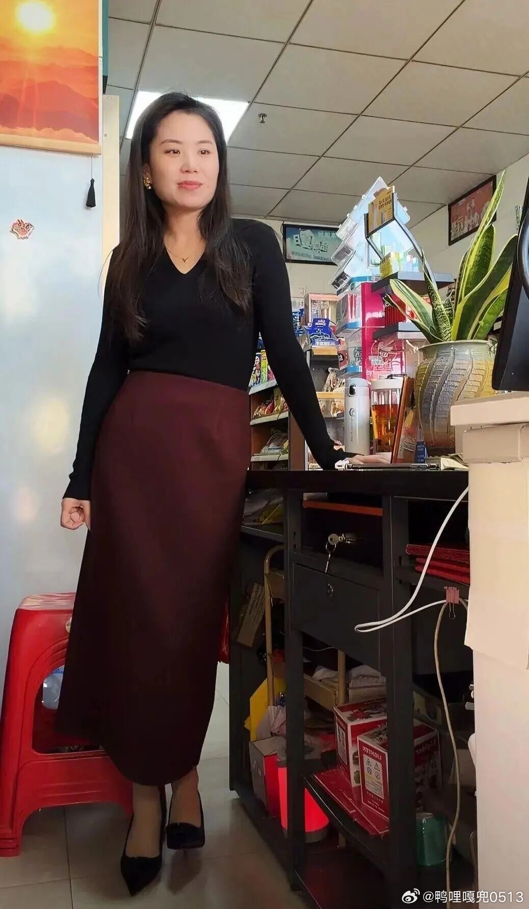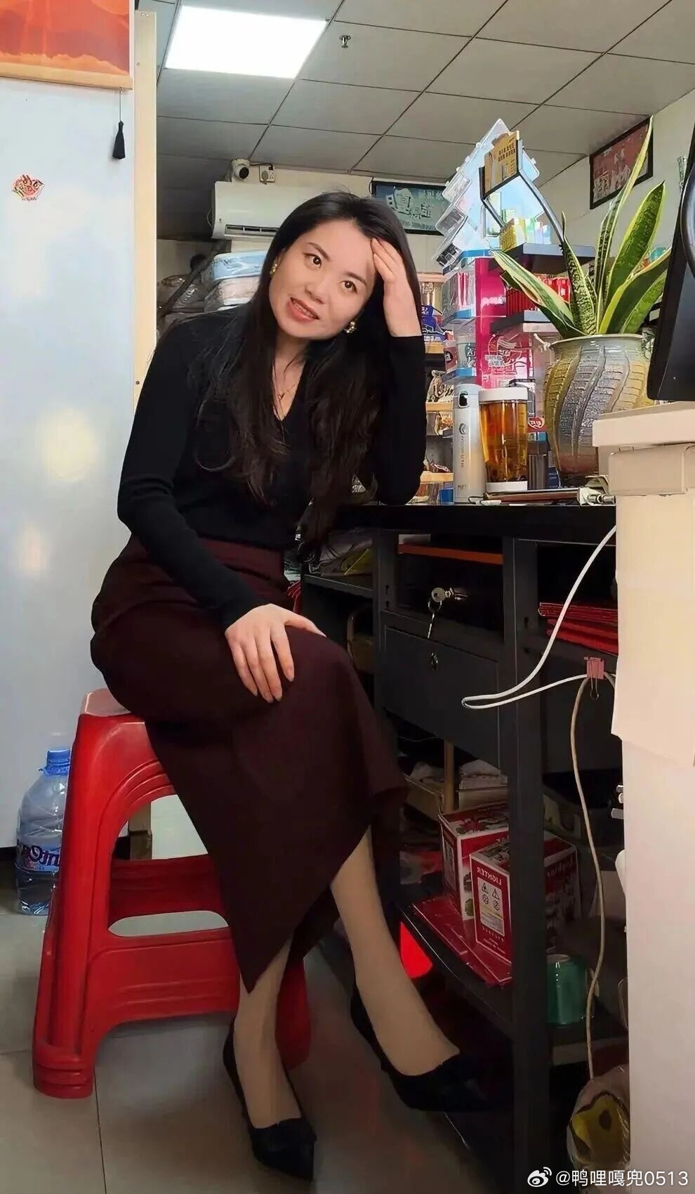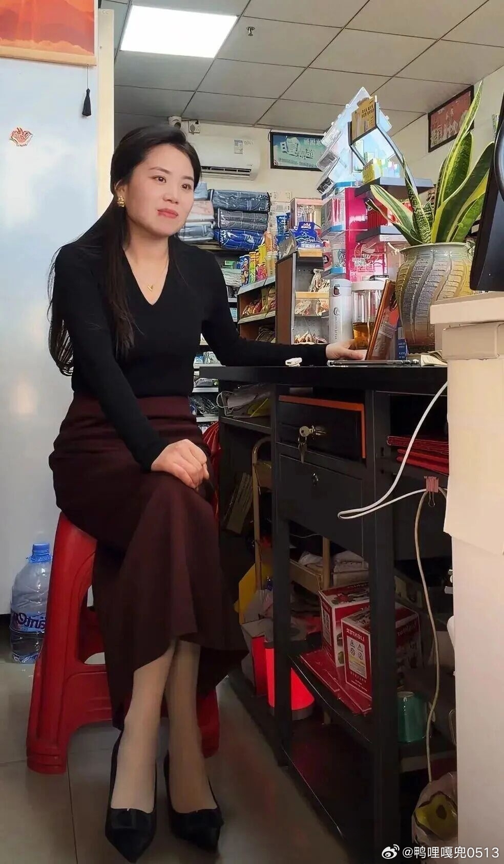 写真 理发店老板娘一身黑色吊带连衣裙真好看