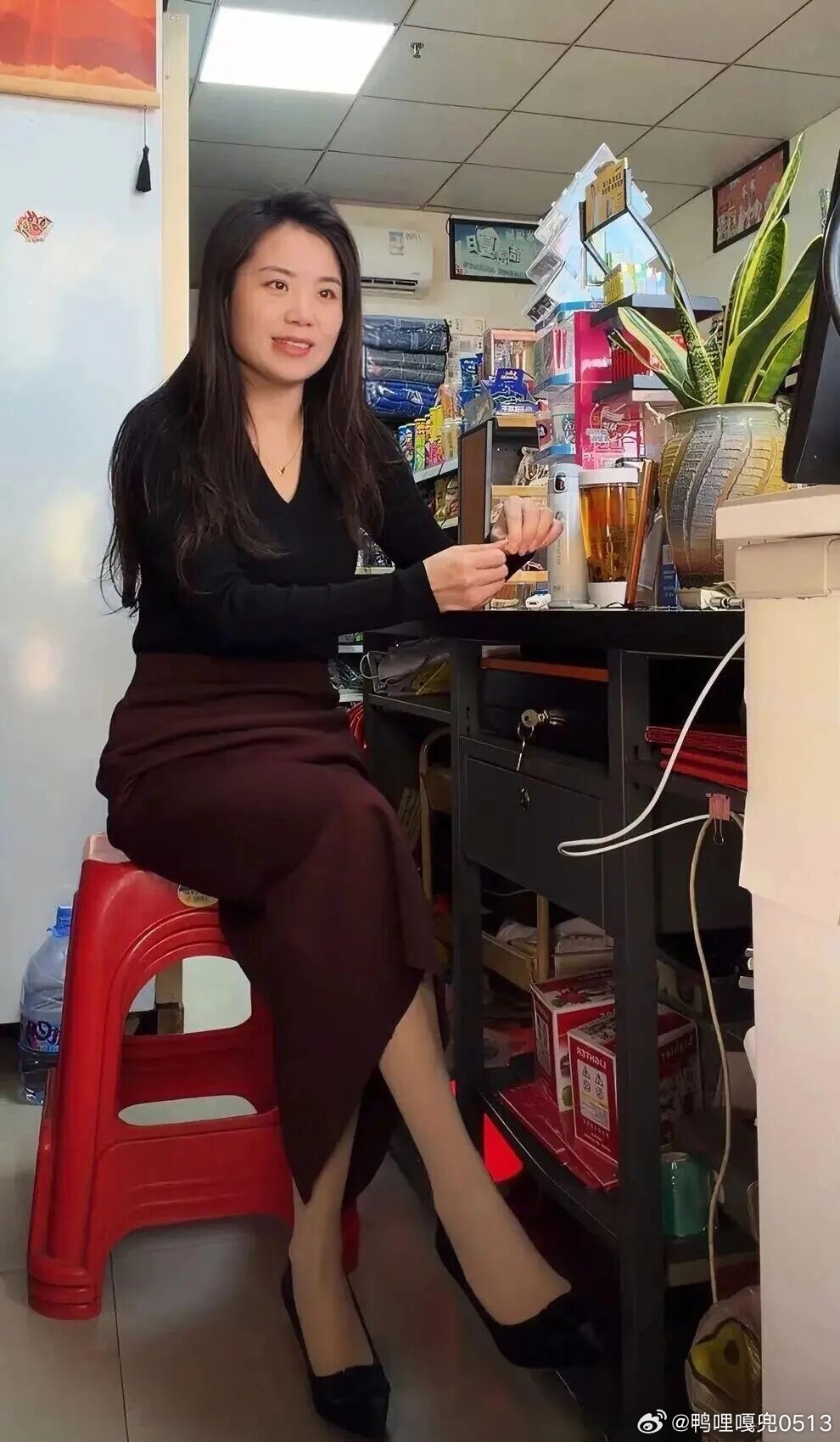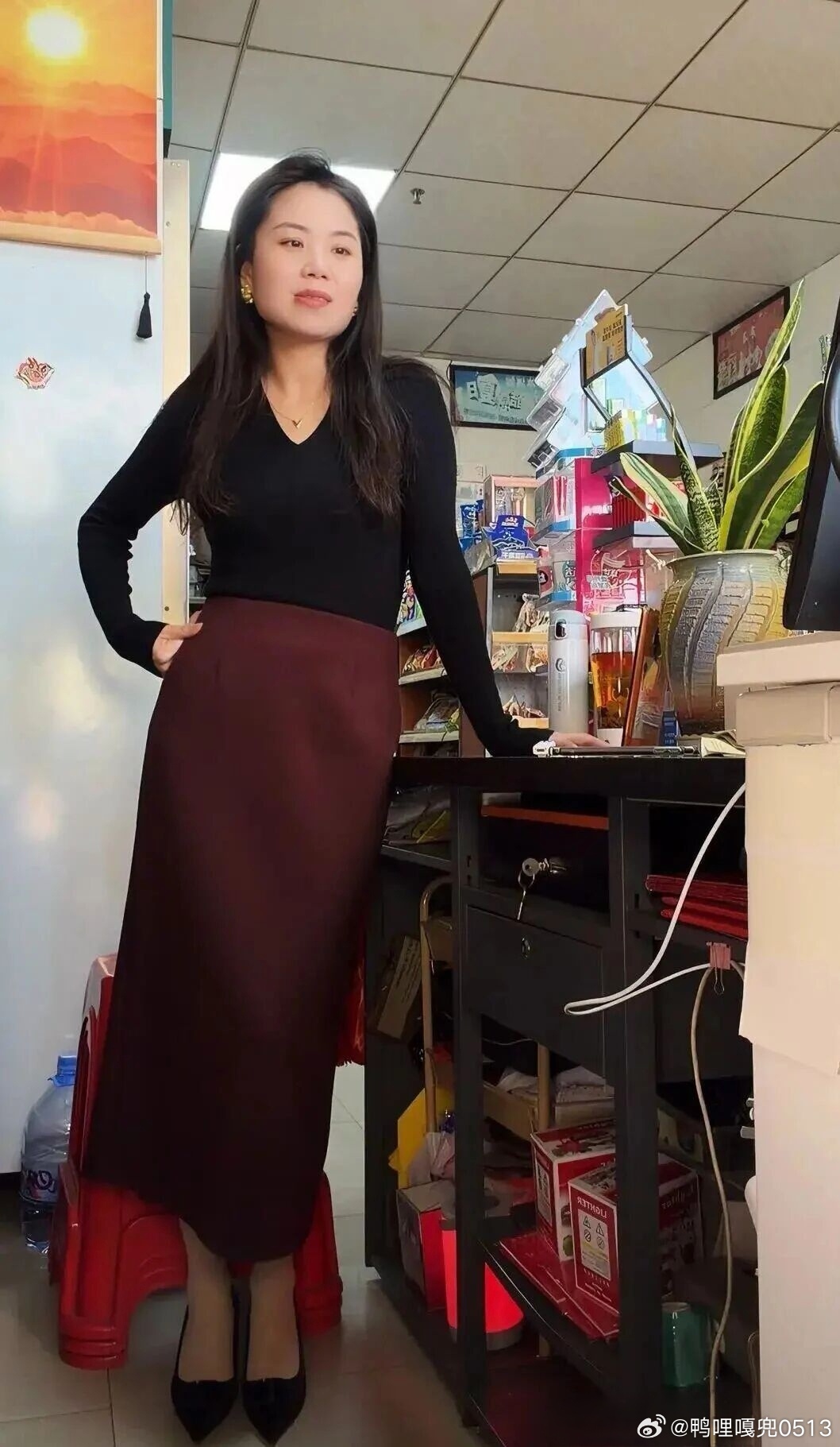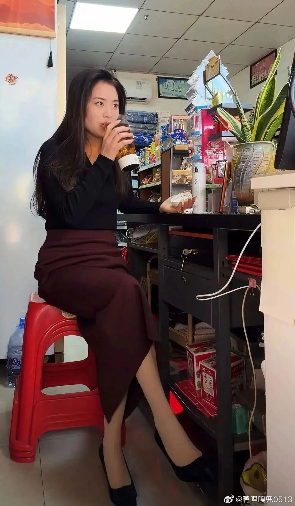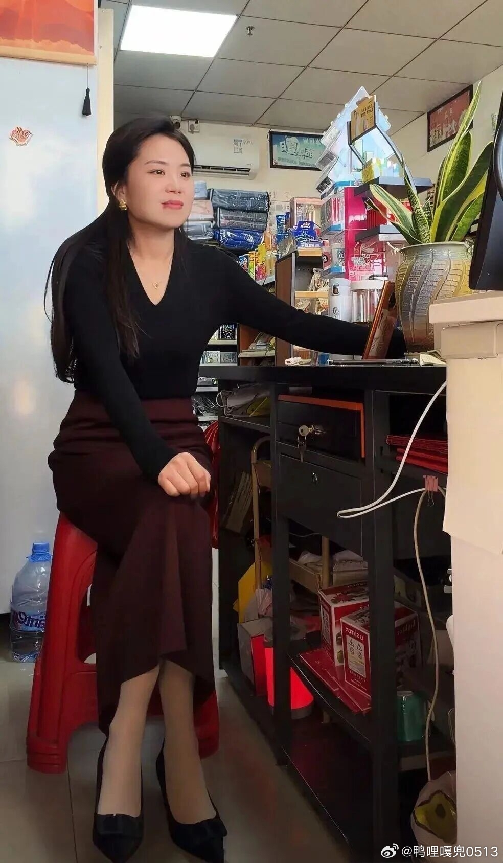 写真 理发店老板娘一身黑色吊带连衣裙真好看