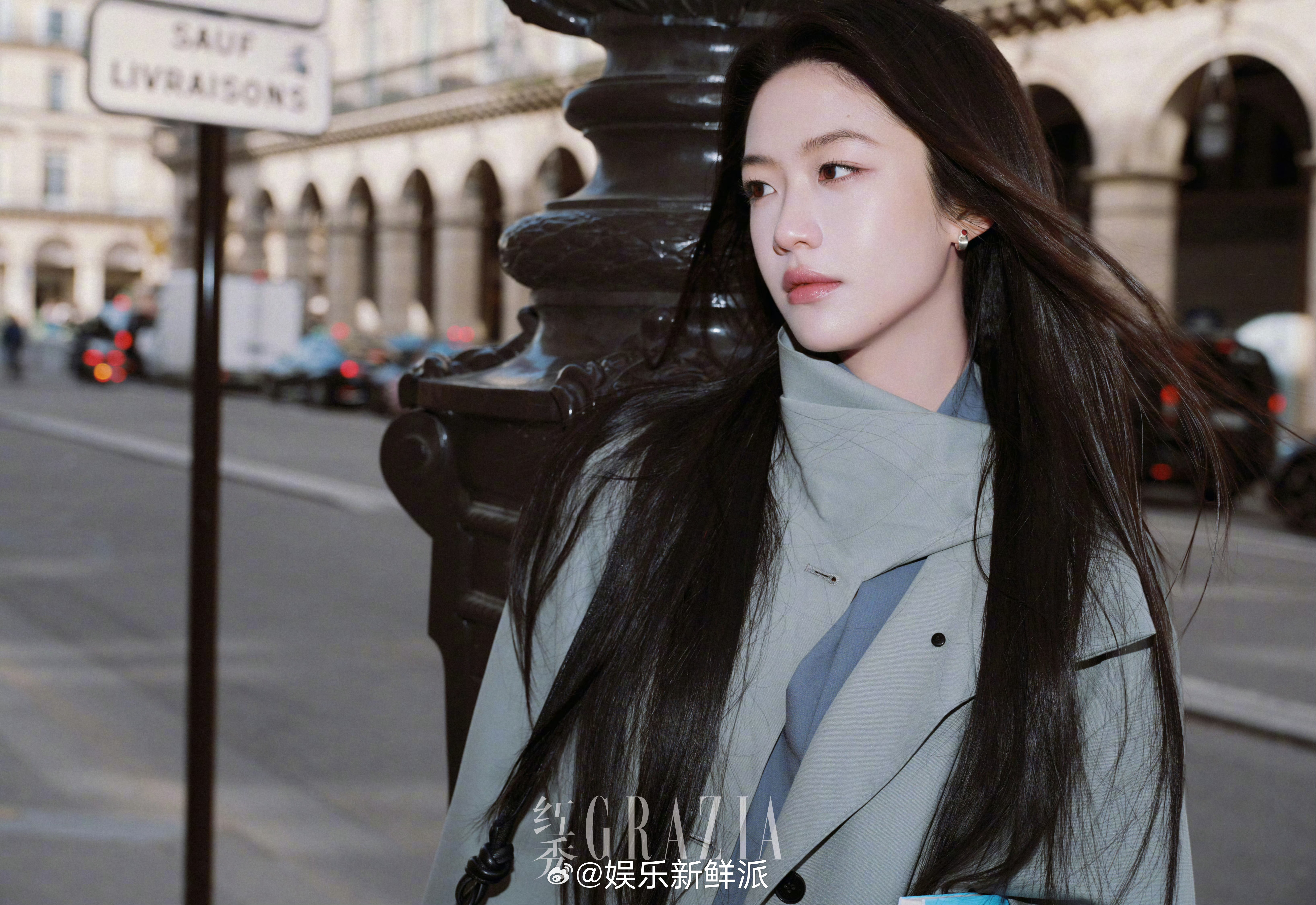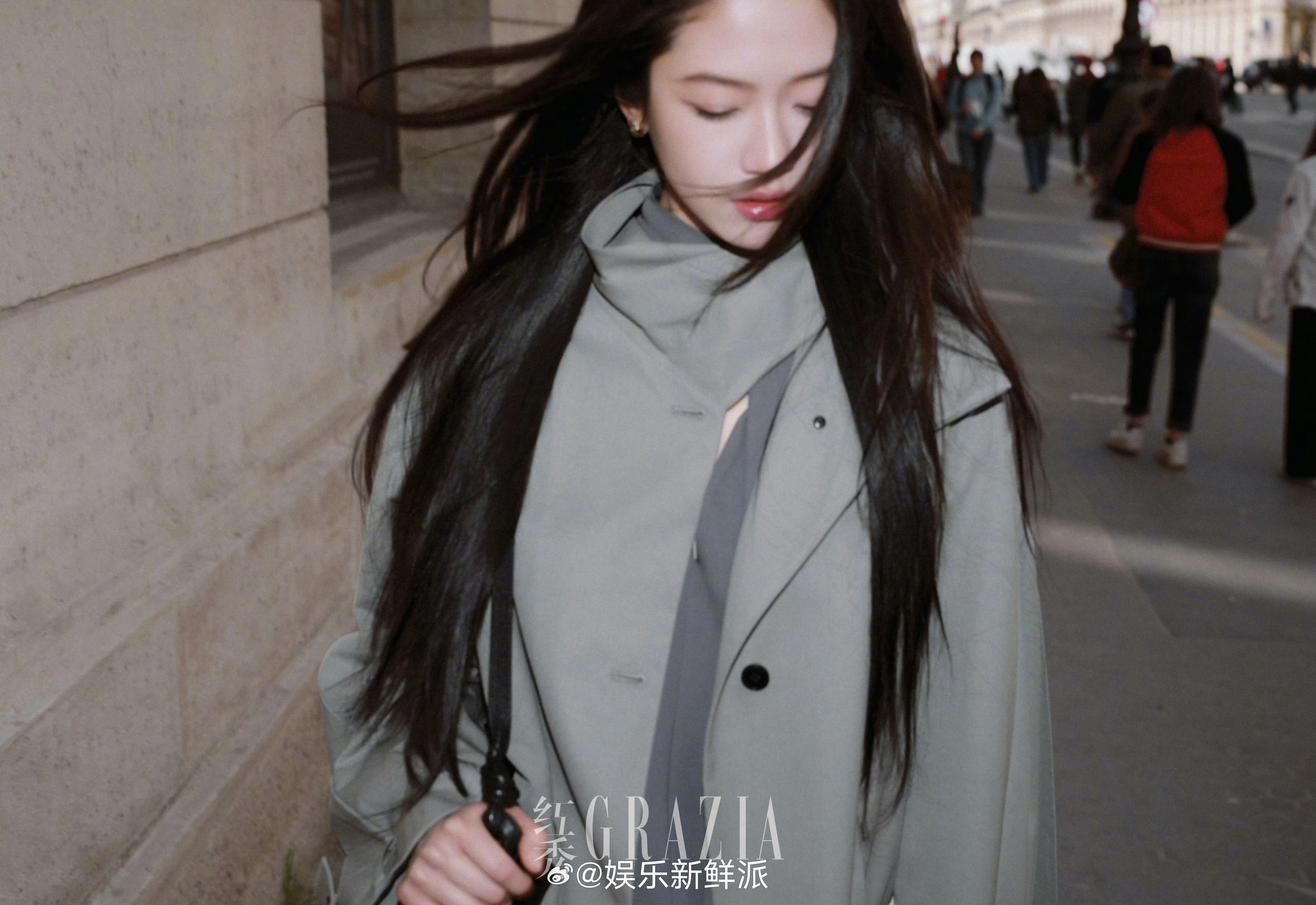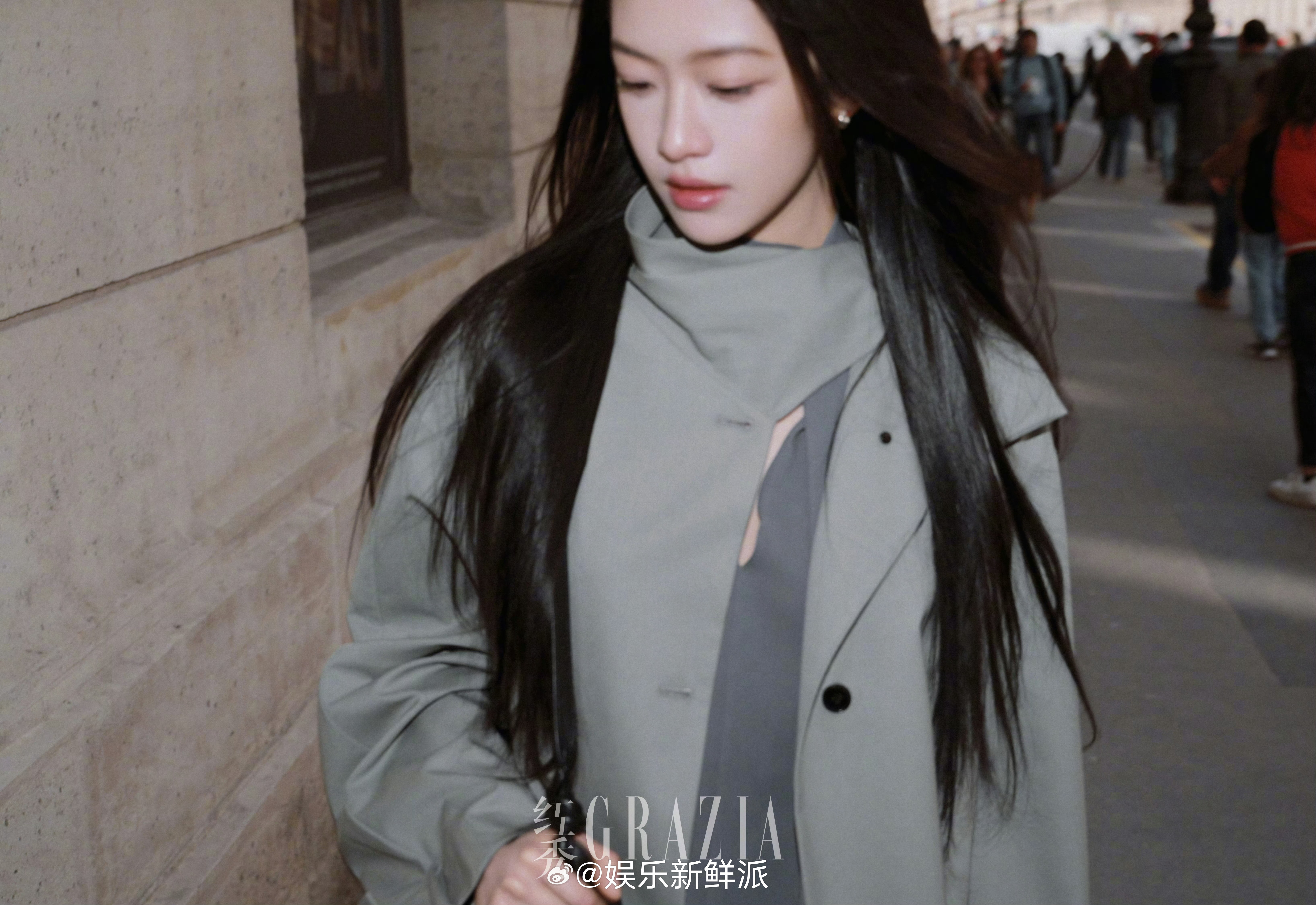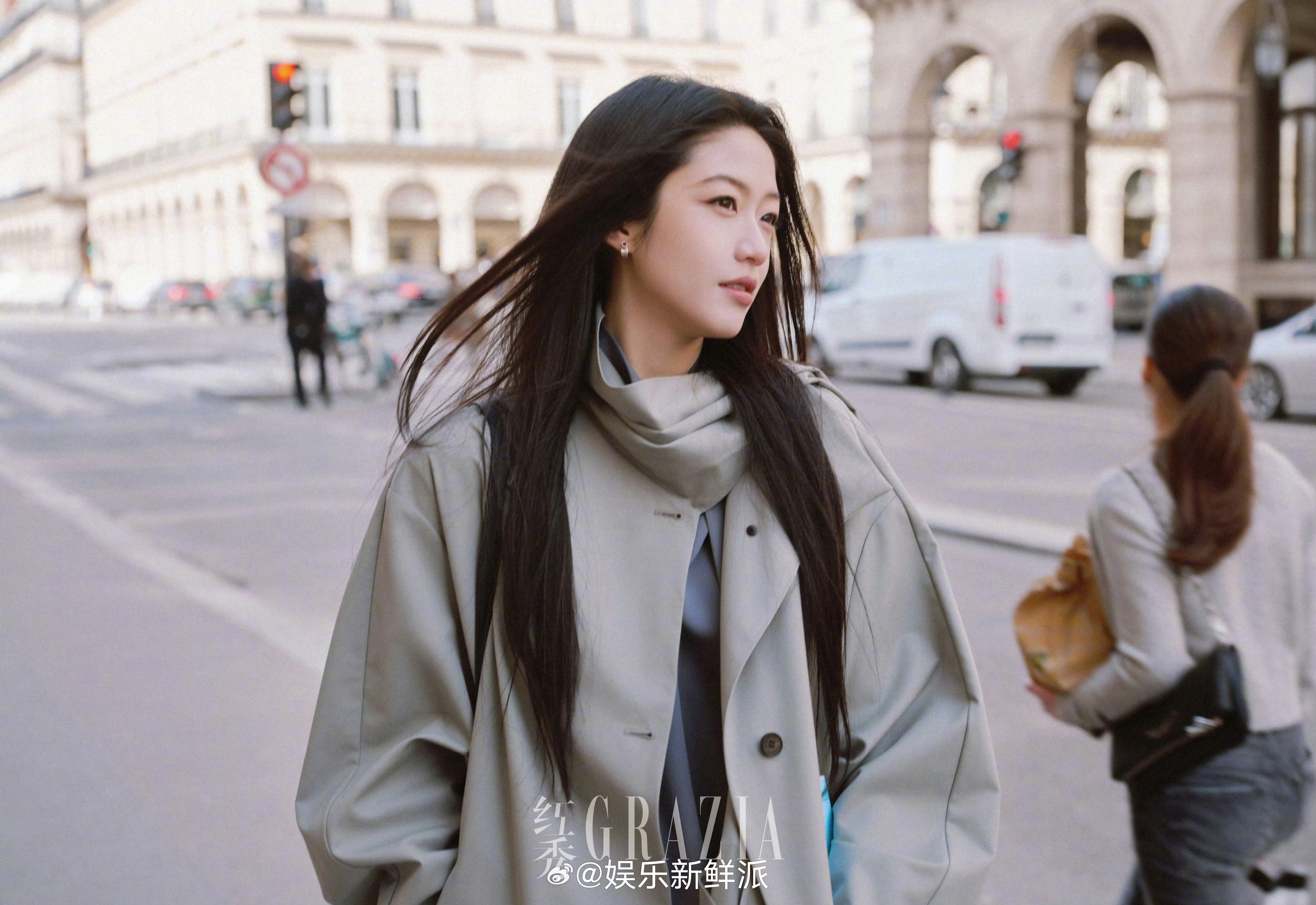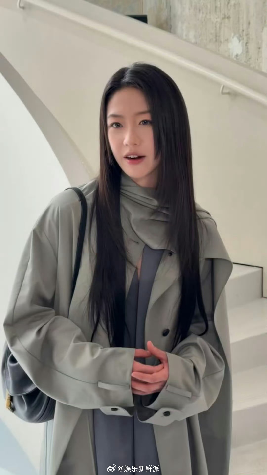 派酱安利向涵之看秀造型看秀的这套造型时尚表现力绝。浅灰色风衣利落优雅,简直是黑长直女神来的。明艳大气的长相,分明的五官,高级感拉满。