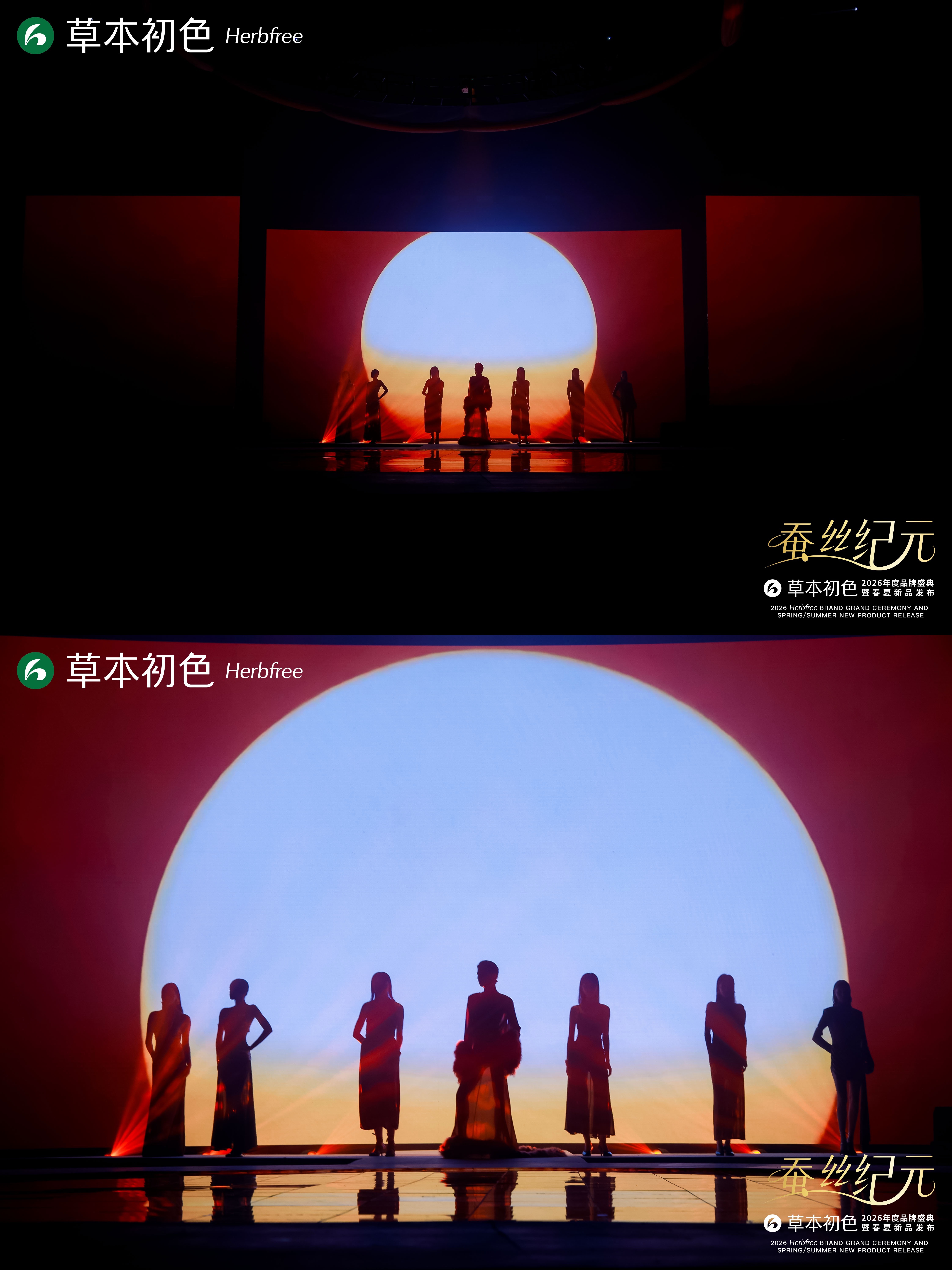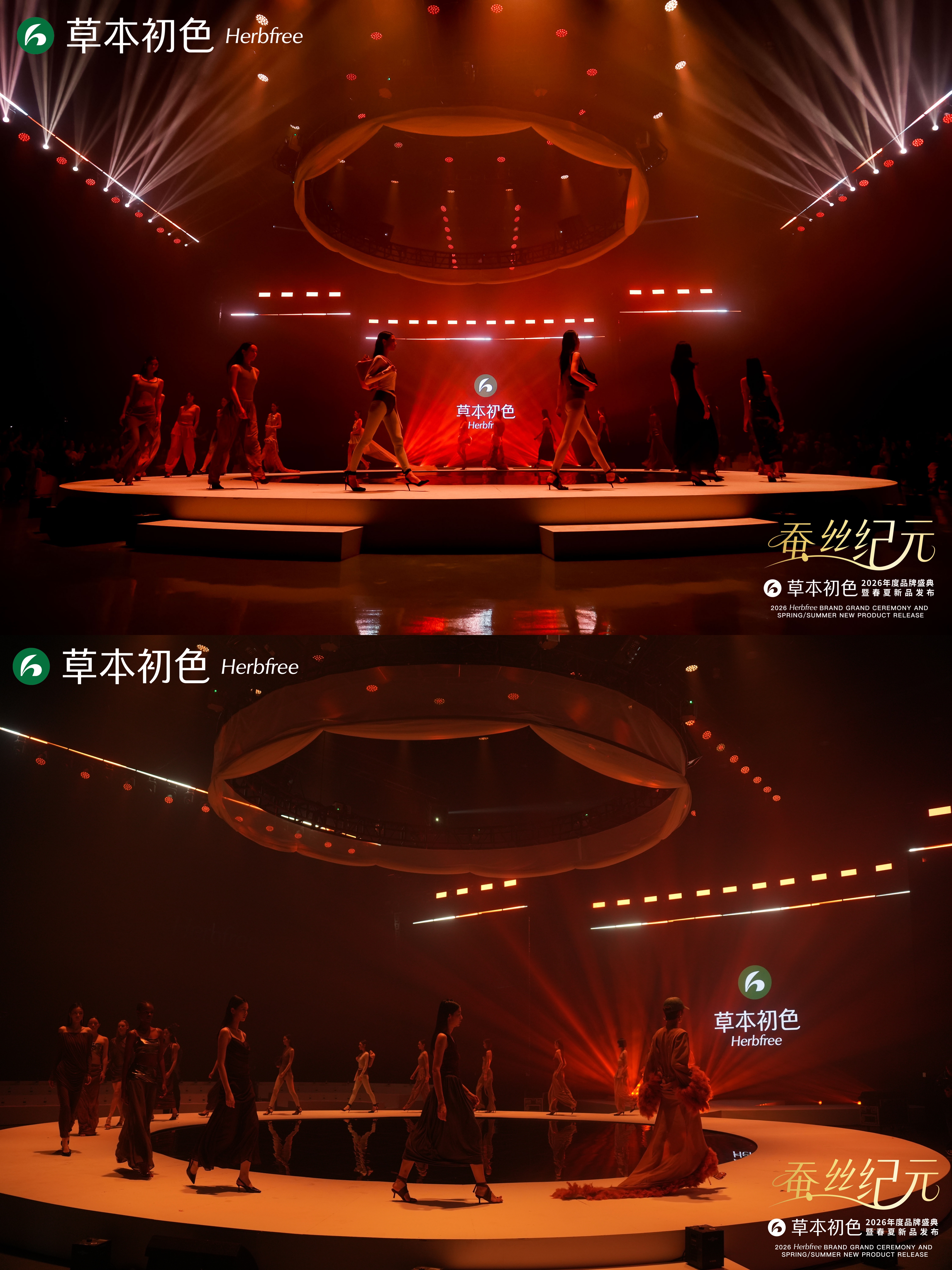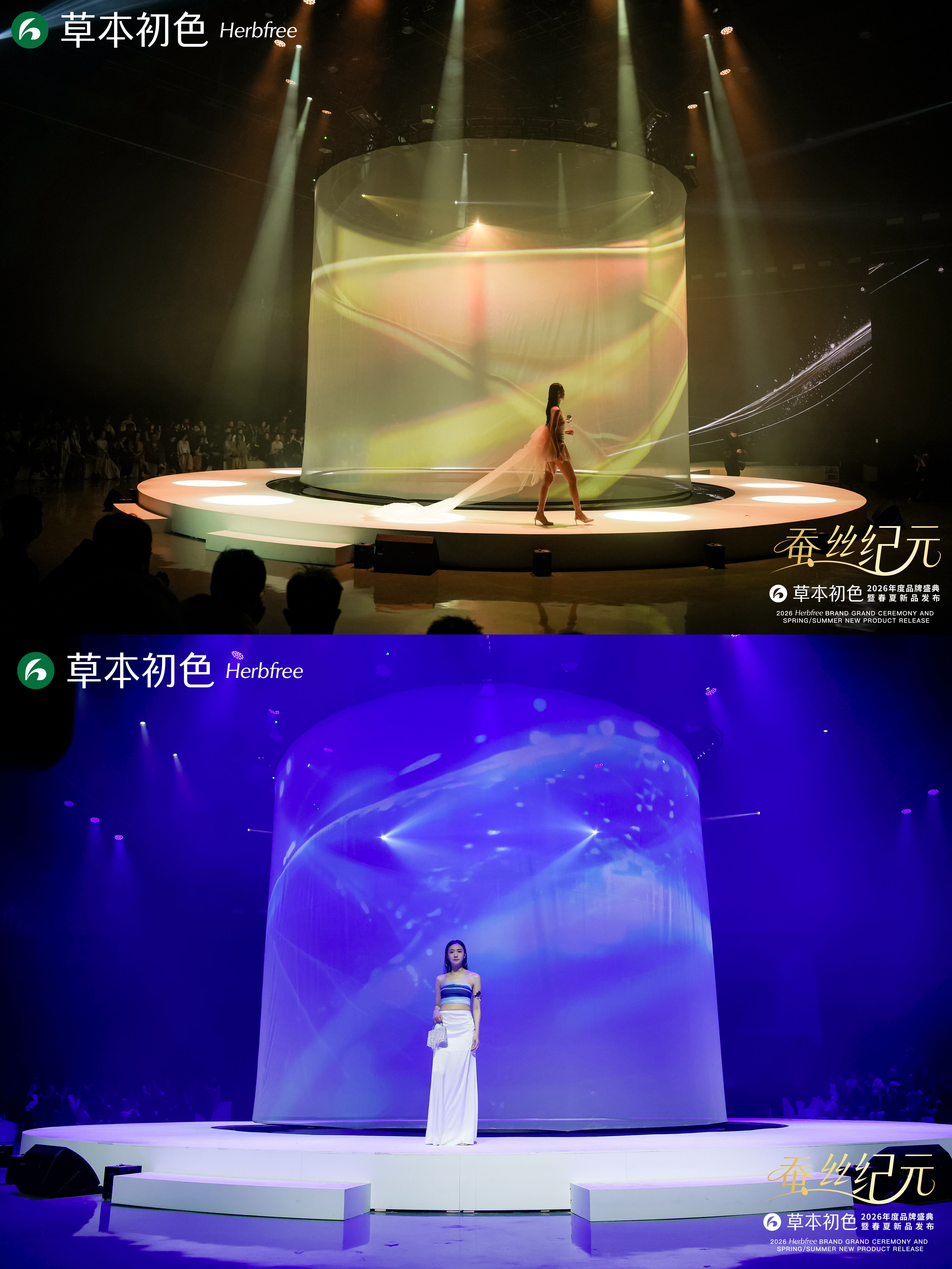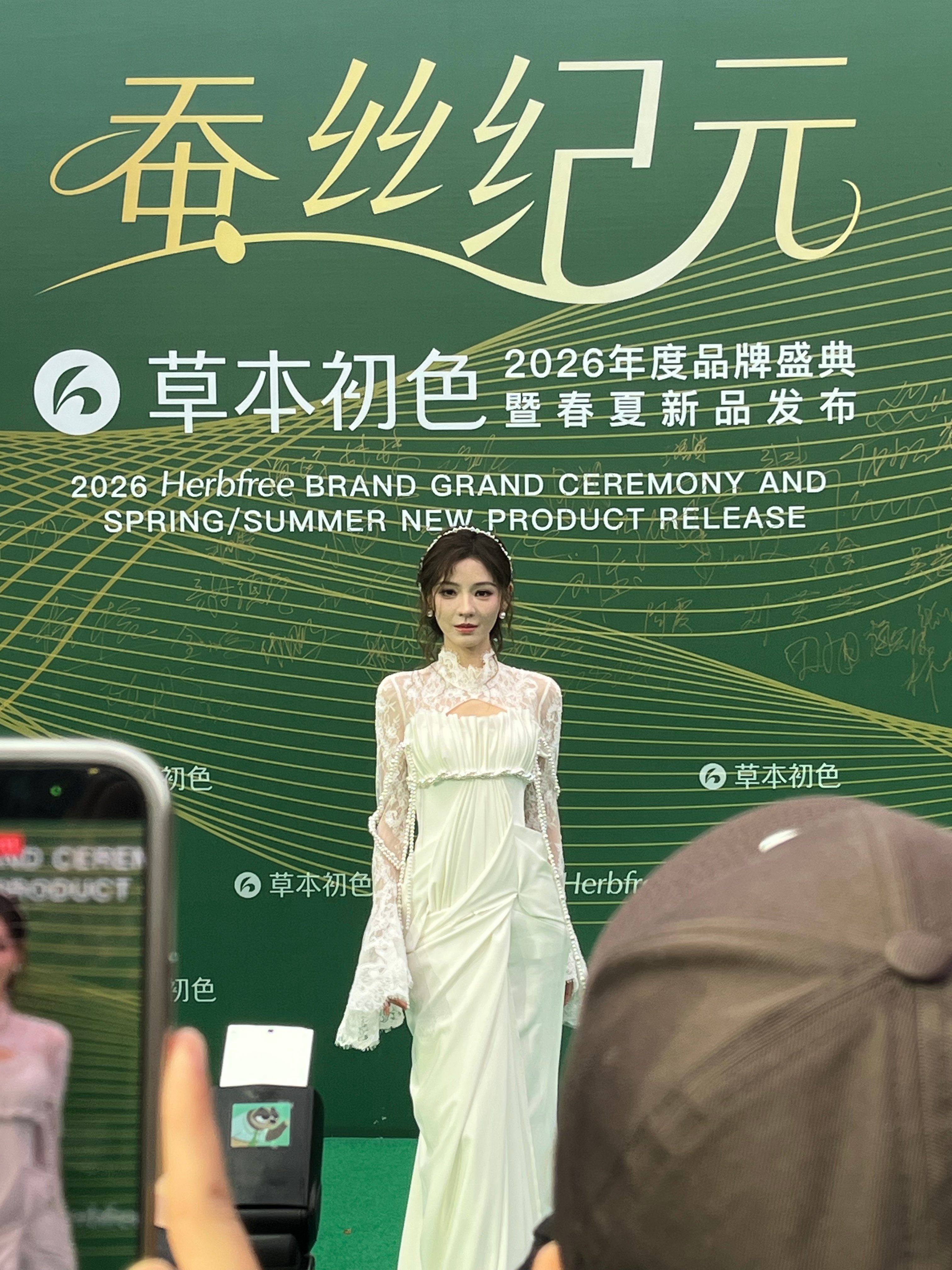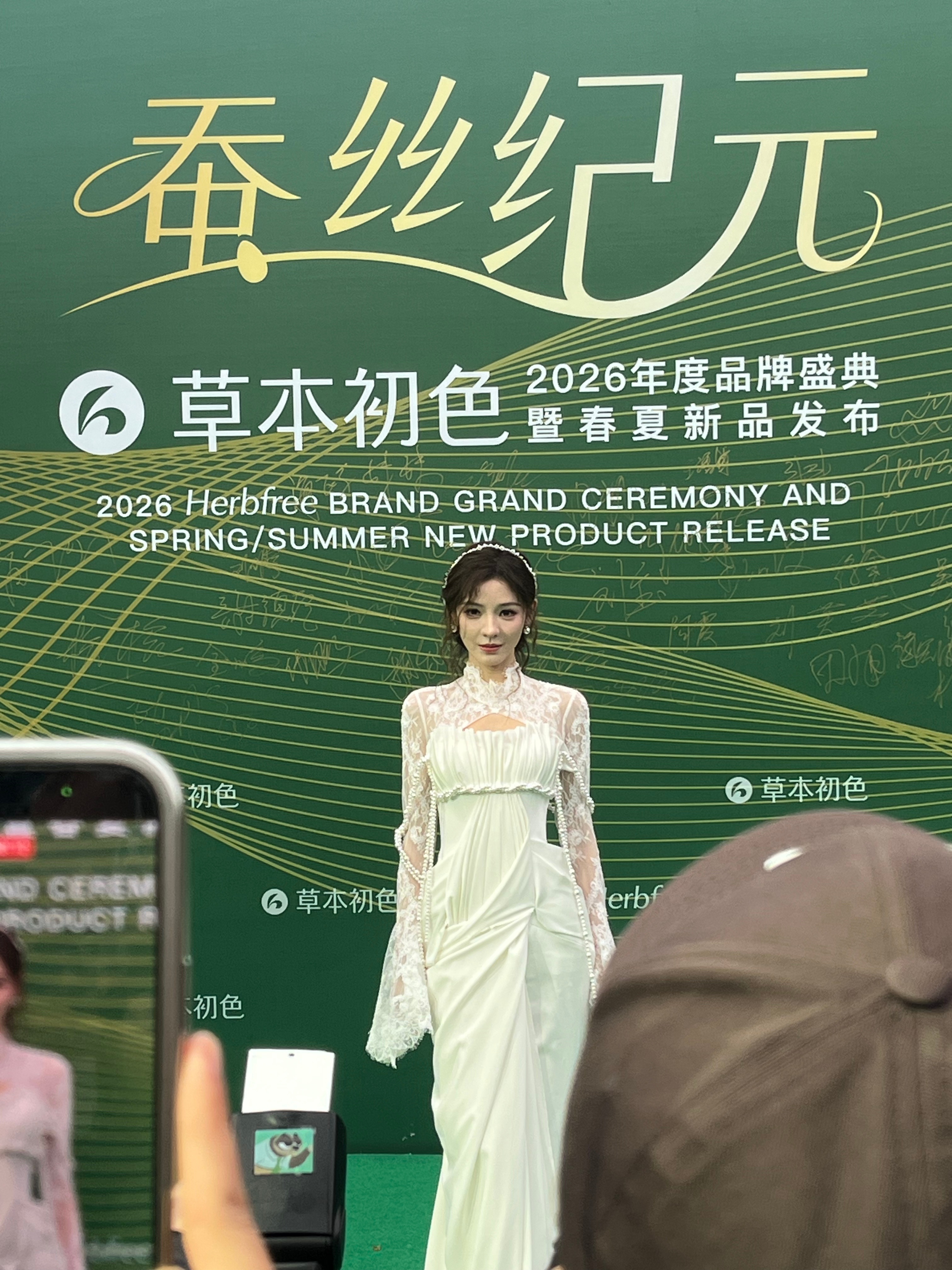 草本初色盛大举行 2026 年度品牌盛典暨春夏新品发布会 ,演员张予曦以两套各具巧思的造型亮相 ,精准呼应了品牌“自在蚕生”的美学理念 。