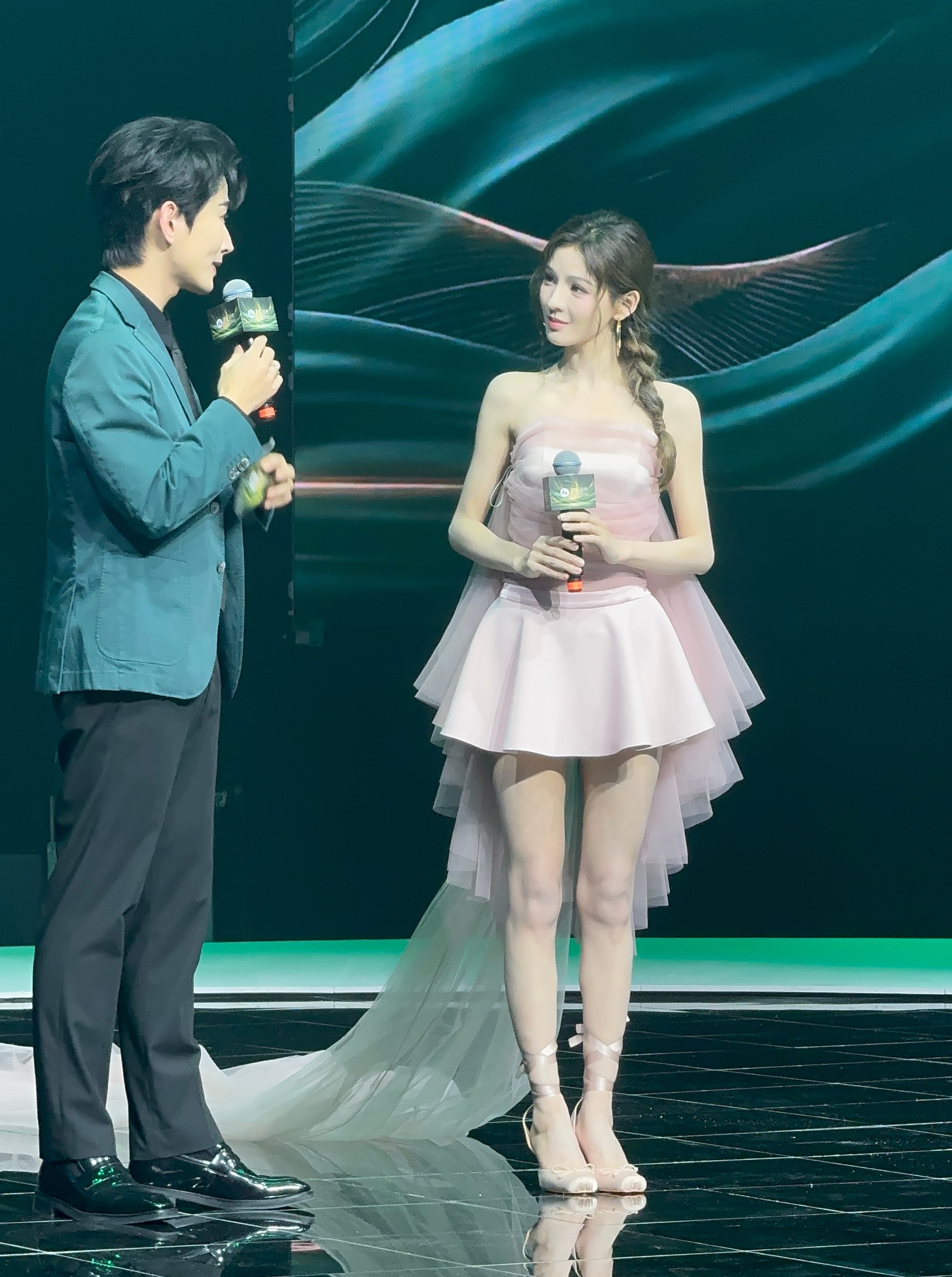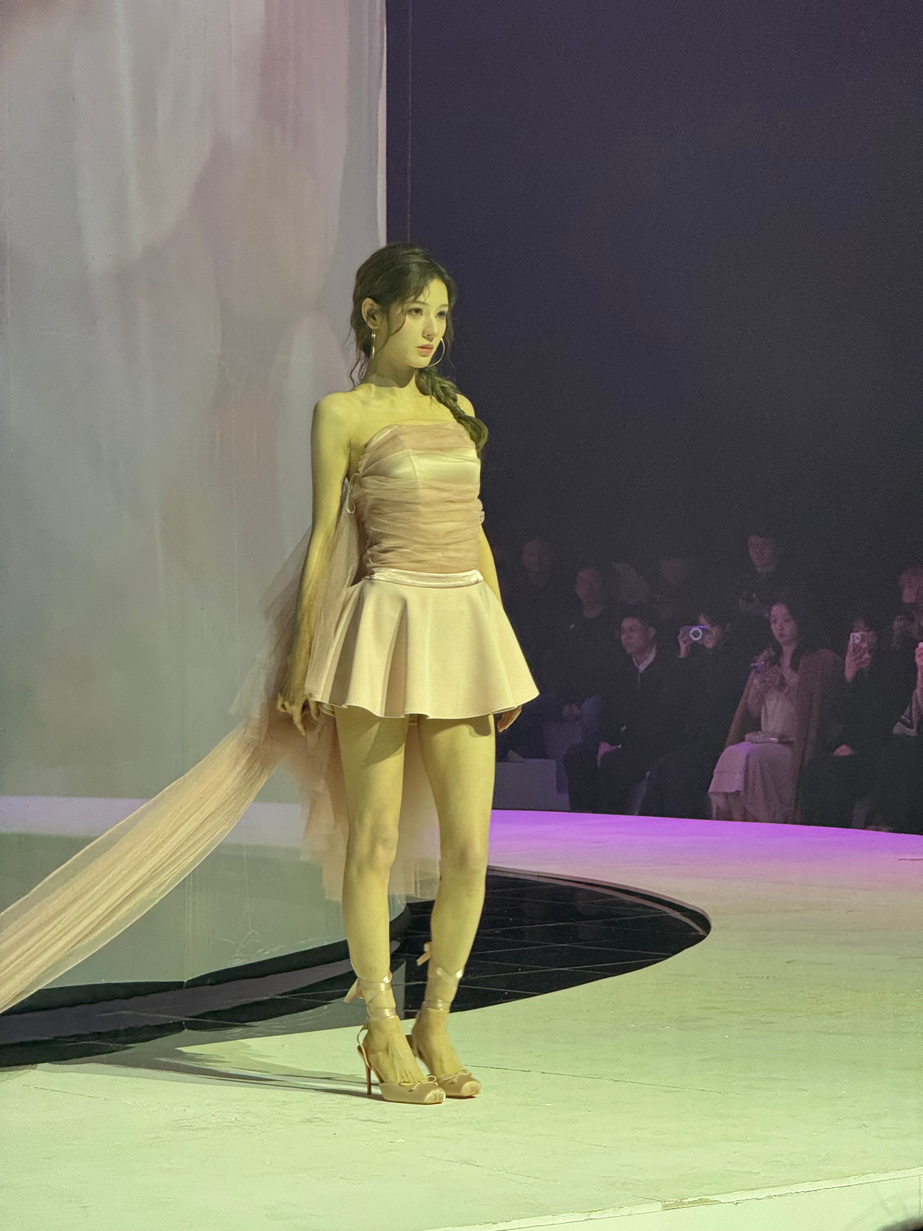 红毯上张予曦身着一袭白色蕾丝长裙 ,柔润的面料质感与温润光泽呼应 ,将东方温婉与现代优雅融合 ;内场走秀环节 ,她换上了品牌春夏花之系列的桑蚕丝新品 。这套造型萃取花苞绽放与蚕蛹破茧的设计灵感 ,裸粉色抹胸搭配轻盈薄纱拖尾 ,利落的缎面短裙与灵动廓形形成鲜明对比 ,将桑蚕丝的细腻质感与系列的新生活力展现得淋漓尽致 ,无需繁复装饰 ,足以让材质与设计成为视觉核心 !