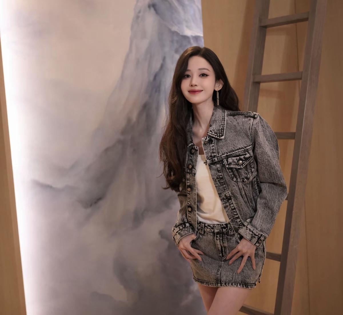 灰调牛仔套装,搭配大波浪卷发,古力娜扎这一身又美又飒,复古感直接拉满[赞]娱乐明星