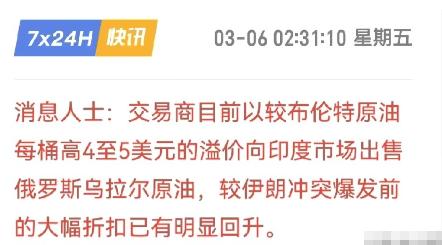 印度又背刺美国了,大规模买入俄罗斯石油,而且是每桶溢价4到5美元买的,印度整天摇摆不定,俄罗斯已经看透了,不再打折卖给印度了,之前印度占了太多便宜了,要俄罗斯打4到5折卖给印度,因为俄罗斯没有太多的选择,所以不得不按照印度的意思,打折卖给印度,现在形势不一样了,伊朗把霍尔木兹海峡封锁了,全世界能大规模供应石油的就是俄罗斯了,所以很多国家都得求着俄罗斯卖给它们,所以只能加价买,印度也不例外! 说这事儿,还得从之前印度怎么占俄罗斯便宜说起,俄乌冲突刚爆发那阵子,俄罗斯被西方制裁得厉害,石油出口的路基本被堵死,欧洲那边直接宣布停购俄油,俄罗斯没办法,只能转头深耕亚洲市场,而印度就瞅准了这个机会,开始跟俄罗斯漫天要价。 那时候印度心里门儿清,俄罗斯急需找到稳定的石油买家,没什么太多选择,就故意拿捏俄罗斯,逼着对方打4到5折卖石油,还得承担海运、保险这些额外费用。俄罗斯为了弥补欧洲市场留下的空缺,只能咬着牙答应,毕竟能卖出石油换收入,总比砸在手里强。有数据显示,2022年俄乌冲突后,印度从俄罗斯进口的原油量同比暴涨12倍,之前2021年的时候,俄油在印度进口原油里占比才2%,到了2022年底,这个比例直接飙升,最高的时候印度每天要从俄罗斯买119万桶原油,一度成了俄罗斯原油的最大买家。 印度可没浪费这个低价机会,它把从俄罗斯低价买来的乌拉尔原油,在自己国内的炼油厂加工成柴油、汽油这些成品,然后贴上“印度制造”的标签,转手卖给避嫌不买俄油的欧洲国家,从中赚了一大笔差价。2023年的时候,印度对欧洲的柴油出口量,比之前翻了一倍还多,成了欧洲柴油进口的第二大来源国,仅次于沙特,说白了就是靠着俄罗斯的低价原油,当了回“二手贩子”,赚得盆满钵满。那时候印度一边跟美国凑近乎,嘴上说着会考虑减少俄油进口,一边背地里疯狂囤货,把俄罗斯拿捏得死死的。 可谁能想到,形势一下子就反转了,2026年2月底,因为美国和以色列袭击伊朗,伊朗伊斯兰革命卫队直接宣布封锁霍尔木兹海峡,虽然没完全关闭,但是禁止美国、以色列和欧洲国家的船只通过,这一下就打乱了全球石油运输的节奏。要知道,霍尔木兹海峡是全球石油运输的大动脉,中东产油国的石油,有五分之一都得从这里运出去,现在这个通道被管控,大量油轮被迫滞留在红海,全球航运量暴跌85%,很多国家一下子就面临石油供应紧张的问题。 这么一来,俄罗斯的腰杆瞬间就硬起来了,毕竟全世界能大规模稳定供应石油的,也就剩下俄罗斯了。到了2026年伊朗封锁海峡之后,俄罗斯更是彻底不用看印度的脸色,之前给印度的大幅折扣,早就慢慢取消了,反而因为需求暴涨,各国都得加价求着买。 印度这时候就彻底慌了,它本身石油对外依赖度高达80%,每天要消耗500万桶原油,而且40%的进口原油都得经过霍尔木兹海峡,现在海峡被封锁,印度的原油库存只能支撑25天,根本耗不起。没办法,印度只能转头求俄罗斯,之前那种砍价的底气全没了,反而得每桶多花4到5美元,溢价从俄罗斯买石油。有消息说,2026年2月份,印度从俄罗斯进口的原油占比又回升到了30%左右,跟之前1月份因为讨好美国而减少进口的样子,形成了鲜明对比。 更有意思的是印度的摇摆不定,它一边不想得罪美国,毕竟美国一直在施压,特朗普甚至说莫迪承诺过停止购买俄油,还威胁要对印度加征关税,印度有时候会故意减少一点俄油进口,应付一下美国。可另一方面,它又不能放弃俄罗斯这个稳定的石油来源,尤其是现在石油供应紧张,能从俄罗斯买到油就不错了,更别说讲价。印度外交部还特意表态,说自己进口俄油是为了保障国内能源安全,合法的能源交易不该被政治化,言外之意就是,我买我的,美国管不着。 俄罗斯现在也算彻底看透印度了,知道它就是个利益至上的主,之前之所以给那么大折扣,是没办法,现在自己成了全球石油供应的香饽饽,自然不会再让印度占便宜。而且俄罗斯还在推进自己的原油定价机制,慢慢建立自己的价格基准,不再受西方定价的影响,这样一来,印度想再像以前那样压价,根本不可能了。 说来说去,印度这次又背刺美国,其实也是被逼无奈,毕竟能源安全是自己的头等大事,跟美国的关系再好,也不能饿着自己。可它这种两边摇摆的样子,确实有点不地道,一边靠着美国的扶持,一边又偷偷跟美国制裁的俄罗斯做买卖,还从里面赚差价,现在形势变了,从占便宜变成溢价购买,也算是因果循环。美国心里肯定清楚印度在背后搞小动作,但也没办法,毕竟现在全球石油供应紧张,美国自己也得找石油来源,根本没精力跟印度较真,只能看着印度一边“背叛”自己,一边加价从俄罗斯买油,想想也是挺无奈的。