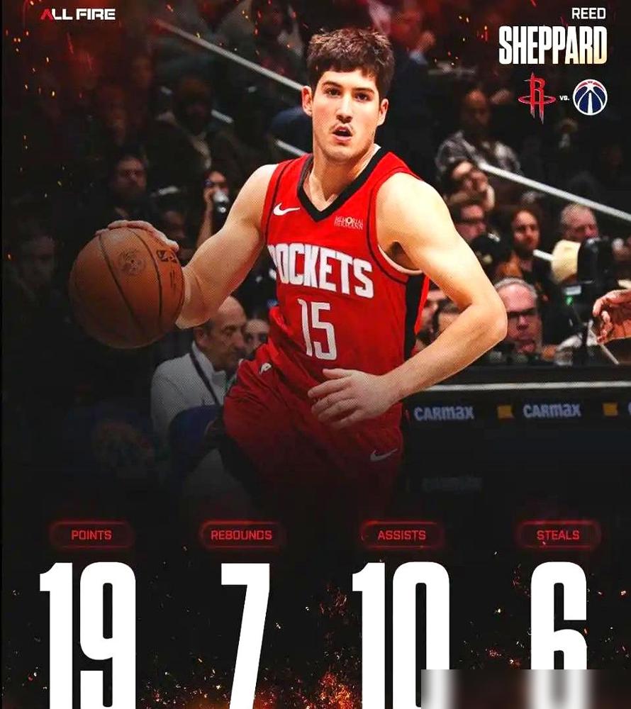 21岁小孩硬生生把球从老将怀里活活薅走,转身塞出贯穿全场的妙传,队友跟进一记暴扣砸得篮架直晃。你绝对不敢相信,这个身高一米八八的里德谢泼德,今晚直接捅破了NBA的顶层天花板。 范弗里特休战,教练一把将球权拍进这名探花郎胸口。他甩开步子满场疯跑,死死咬住持球人,单场狂轰19分10助攻6抢断还要送出2个大血帽。联盟打拼七十多年,能凑齐这套野兽数据的狠角色总共就十个人。 谢泼德偏偏夺下了最年轻的头衔。全明星赛后他踩着四成五的恐怖命中率连天拔起三分,生生扛起火箭稳坐西部第三的宝座。你端起酒杯看看这小子的球场视野,前脚刚在半场生擒对手,后脚已经把球喂进禁区。 竞技体育从来不看论资排辈。休斯顿找到的不是一个只会躲在底线扔三分的看客,而是一头咬断对手咽喉的饥饿猛兽,一台重铸冠军拼图的冷血引擎。