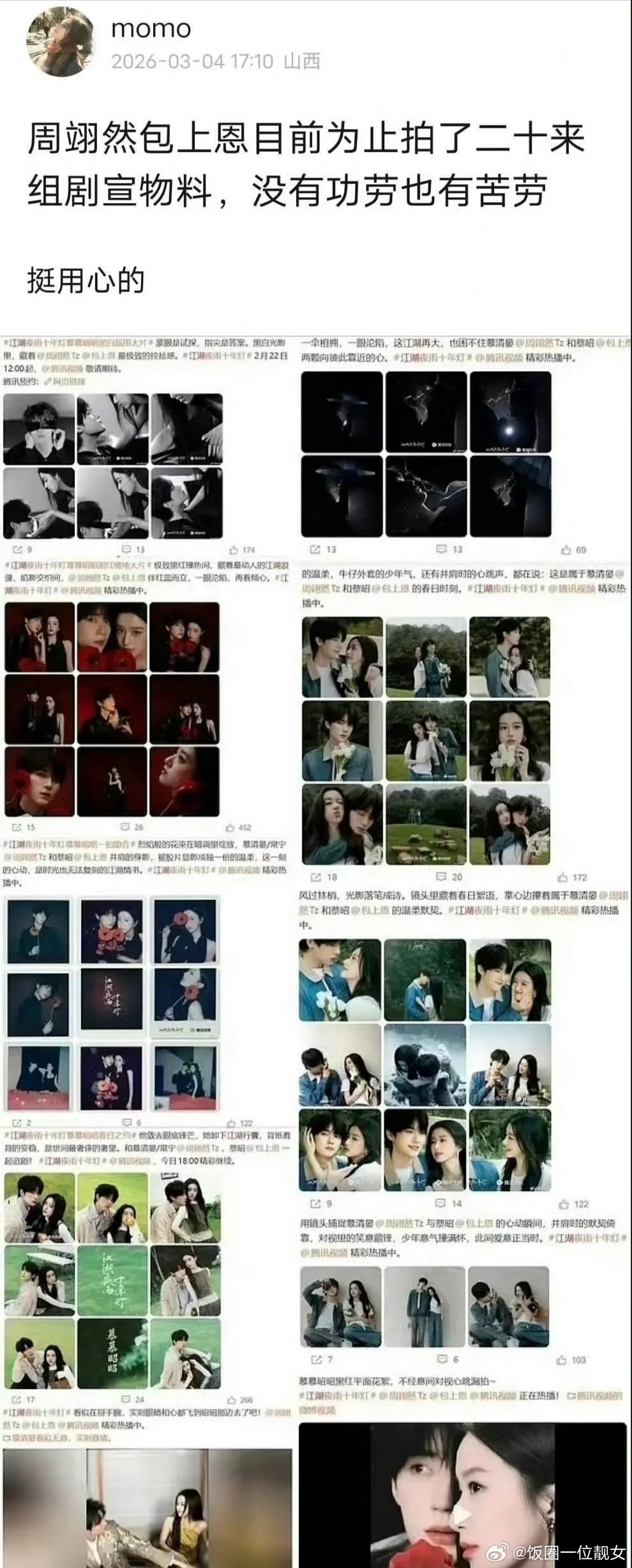 周翊然、包上恩为江湖夜雨十年灯拍摄了二十来组双人剧宣物料…