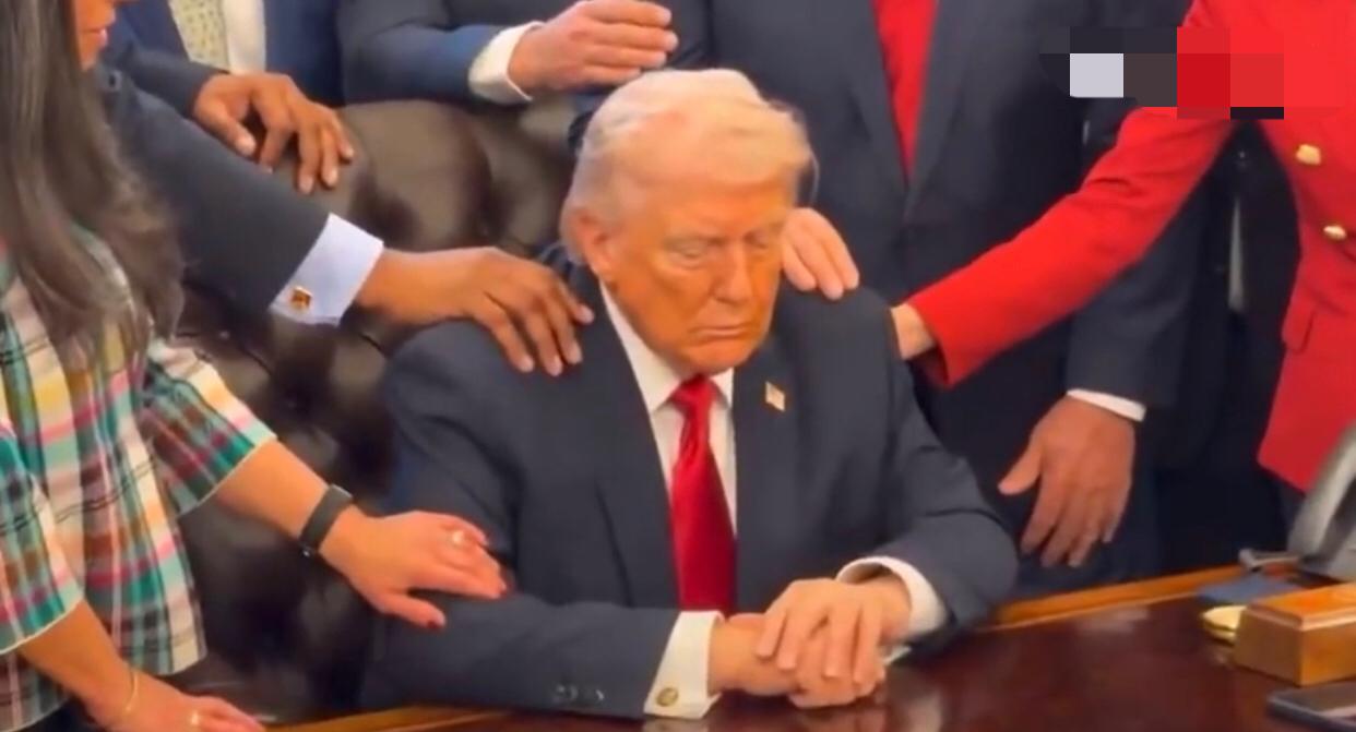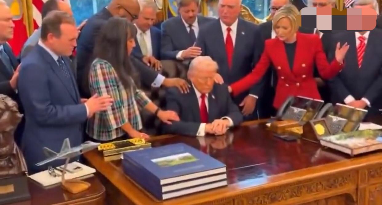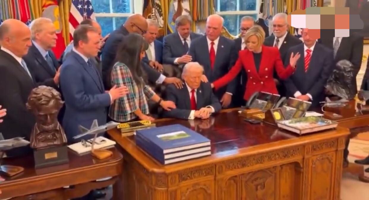 这是在美国白宫椭圆办公室发生的一幕,神棍国家在搞宗教仪式,白宫官员集体参加仪式,手搭手、闭眼祷告、祈求洗刷罪恶感,以获得心理安慰。