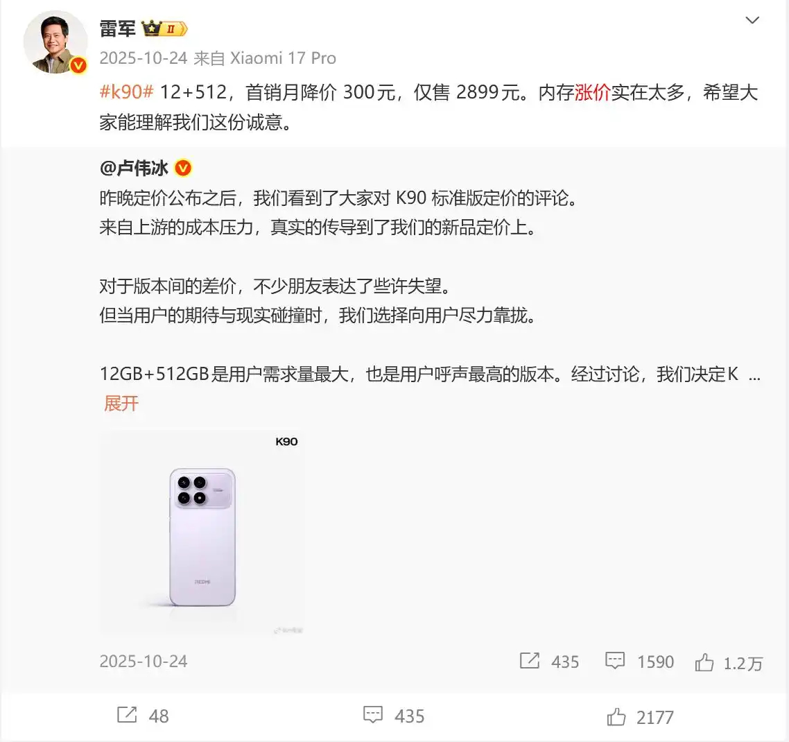 今早才看到雷总表态,即便面对巨大成本压力,小米也会想尽一切办法,把消费者的购机成本压到最低。之前K90发布时,全行业都在涨,小米依然顶住压力,给米粉争取到首销直降300的福利,他真的我哭死。